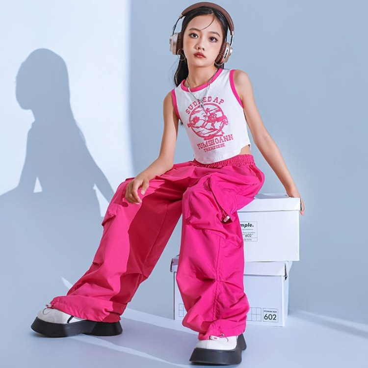 キッズ ジャズダンス 衣装 カーゴパンツ ダンス衣装 女の子 ヒップホップ hiohop 赤 ジュニア 黒 緑 子供 パンツ ピンク ダンス jazz 紫 k-pop 韓国 ズ ガールズ