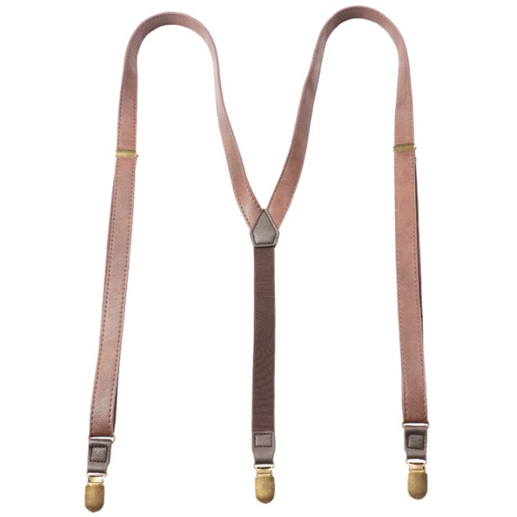フォーマル フェイクレザー Y型 メンズ サスペンダー 20mm ライトブラウン 調節可能 ビジネス クリップ レザー 男女兼用 ブラウン PU
