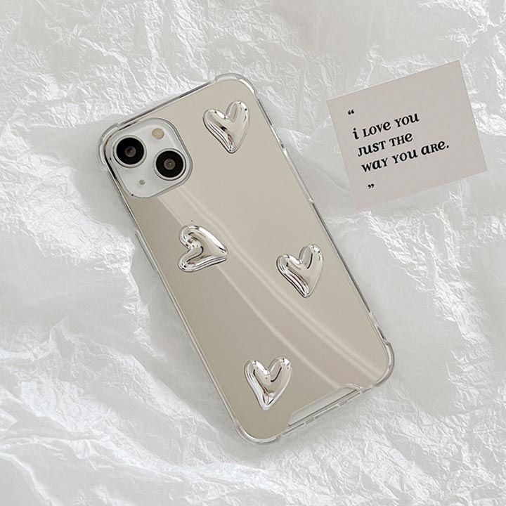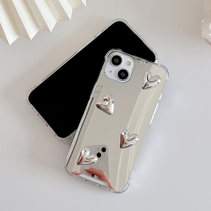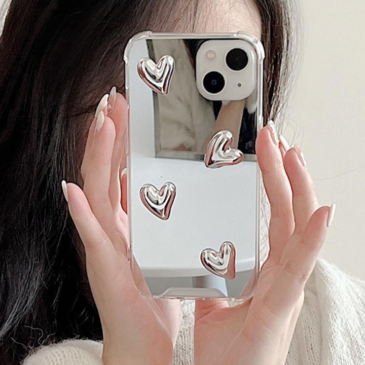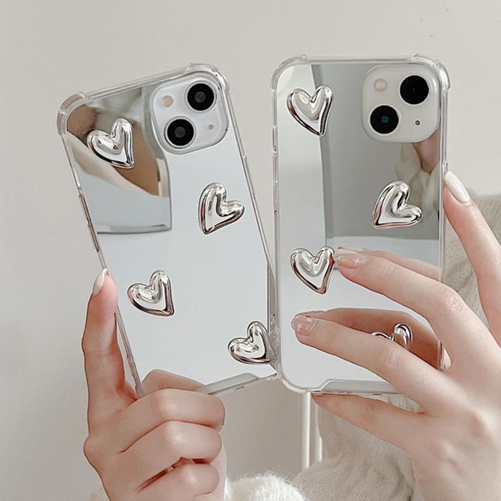 iPhone17ケース iPhoneケース ミラー 鏡 シルバー iphone16eケース iphone15ケース スマホケース アイフォンケース アイフォン16ケース 韓国 メタリック おし ハート