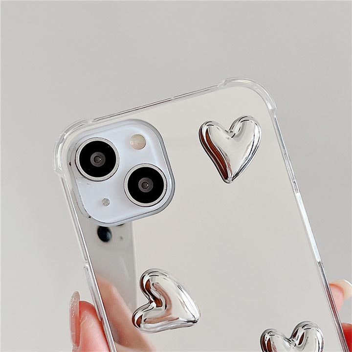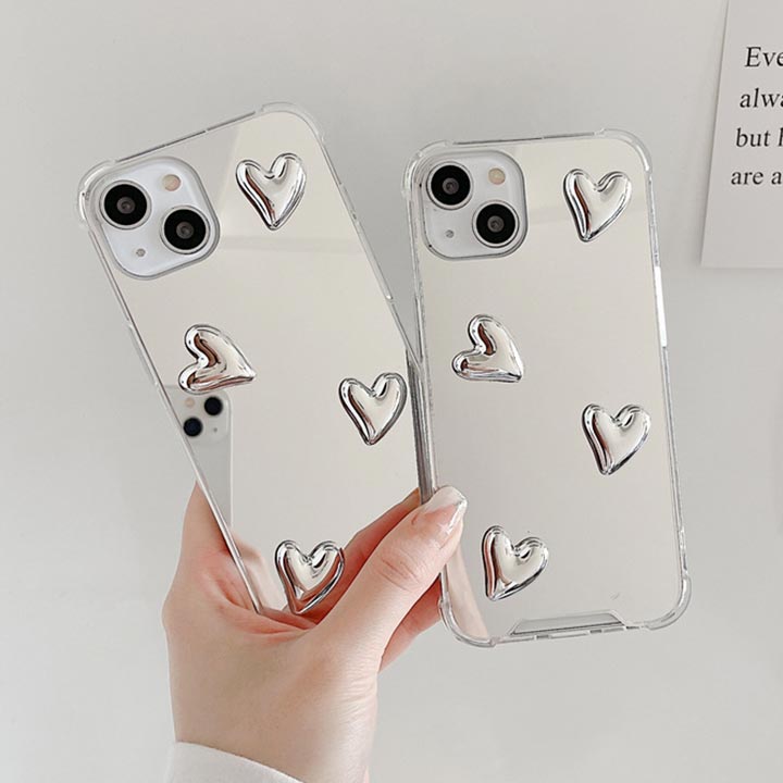 iPhone17ケース iPhoneケース ミラー 鏡 シルバー iphone16eケース iphone15ケース スマホケース アイフォンケース アイフォン16ケース ハート 韓国 メタリック おしゃれ 可愛い iphone12miniケース iphone13miniケース