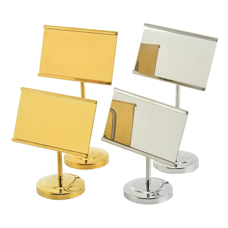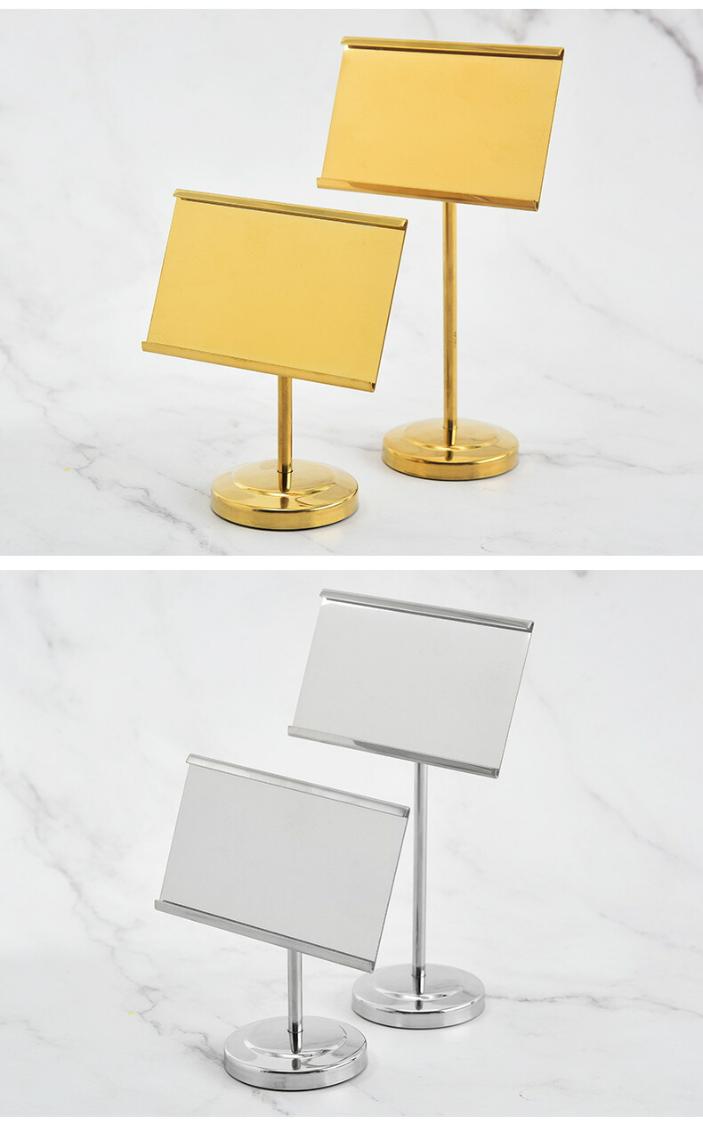 サインホルダー 横 ミニメニュースタンド 角度調整可 ステンレス 名刺スタンド フォトフレーム 広告 写真メモ カード立て 横置きテーブル番号 値札 プレート 父の日 価格表示スタンド