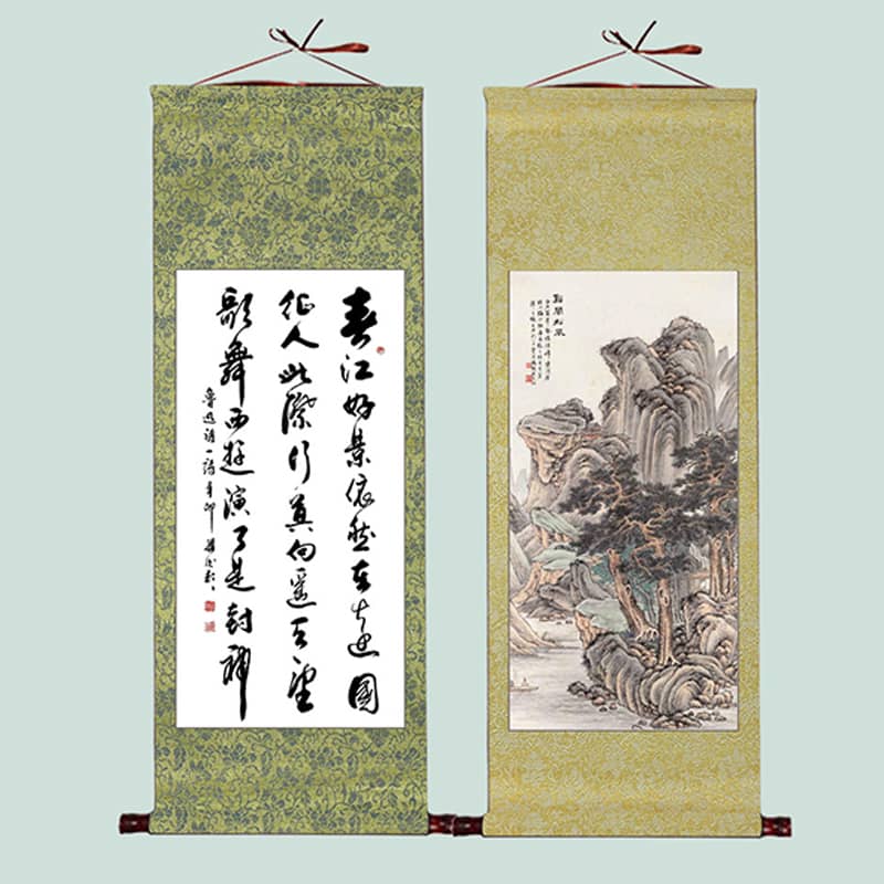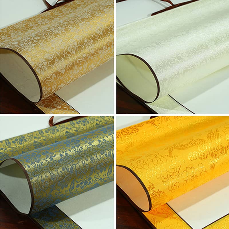 2本セット 110*40cm 掛け軸 文房具 事務用品 書道用具 半紙 豊富 ゴールド&ベージュ ホワイト&グリーン