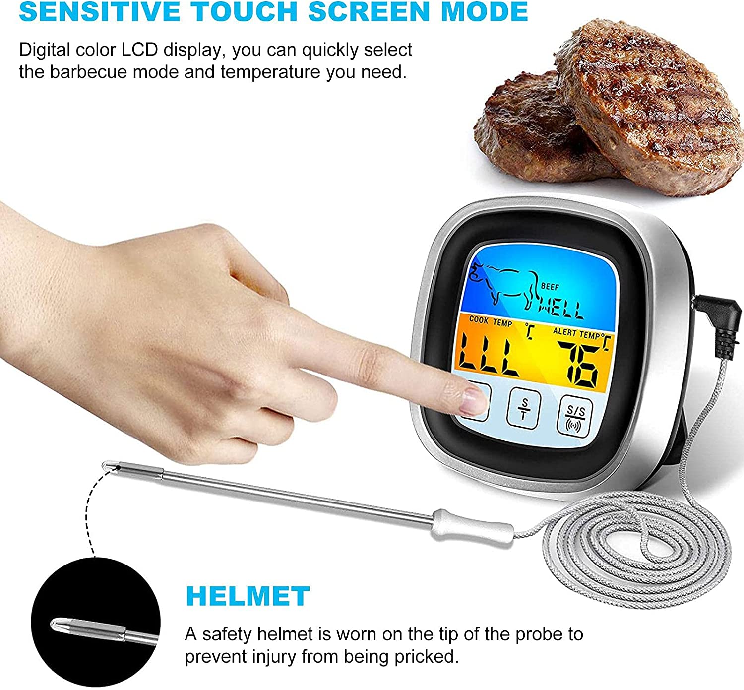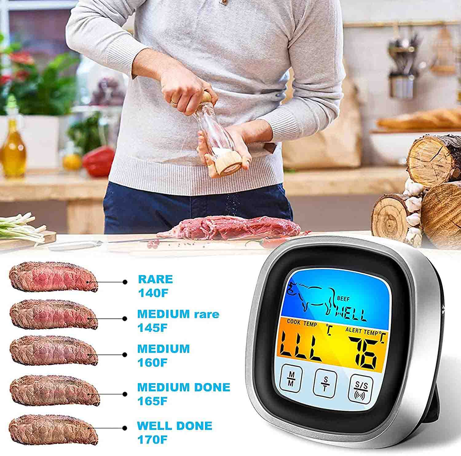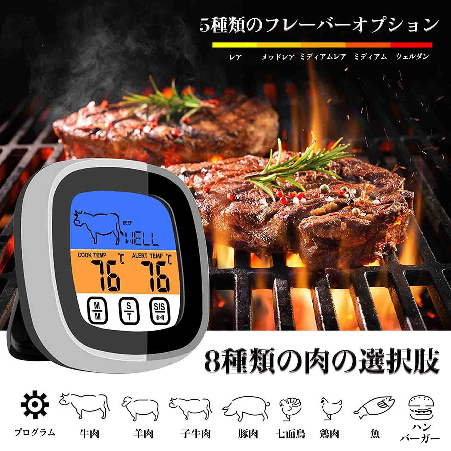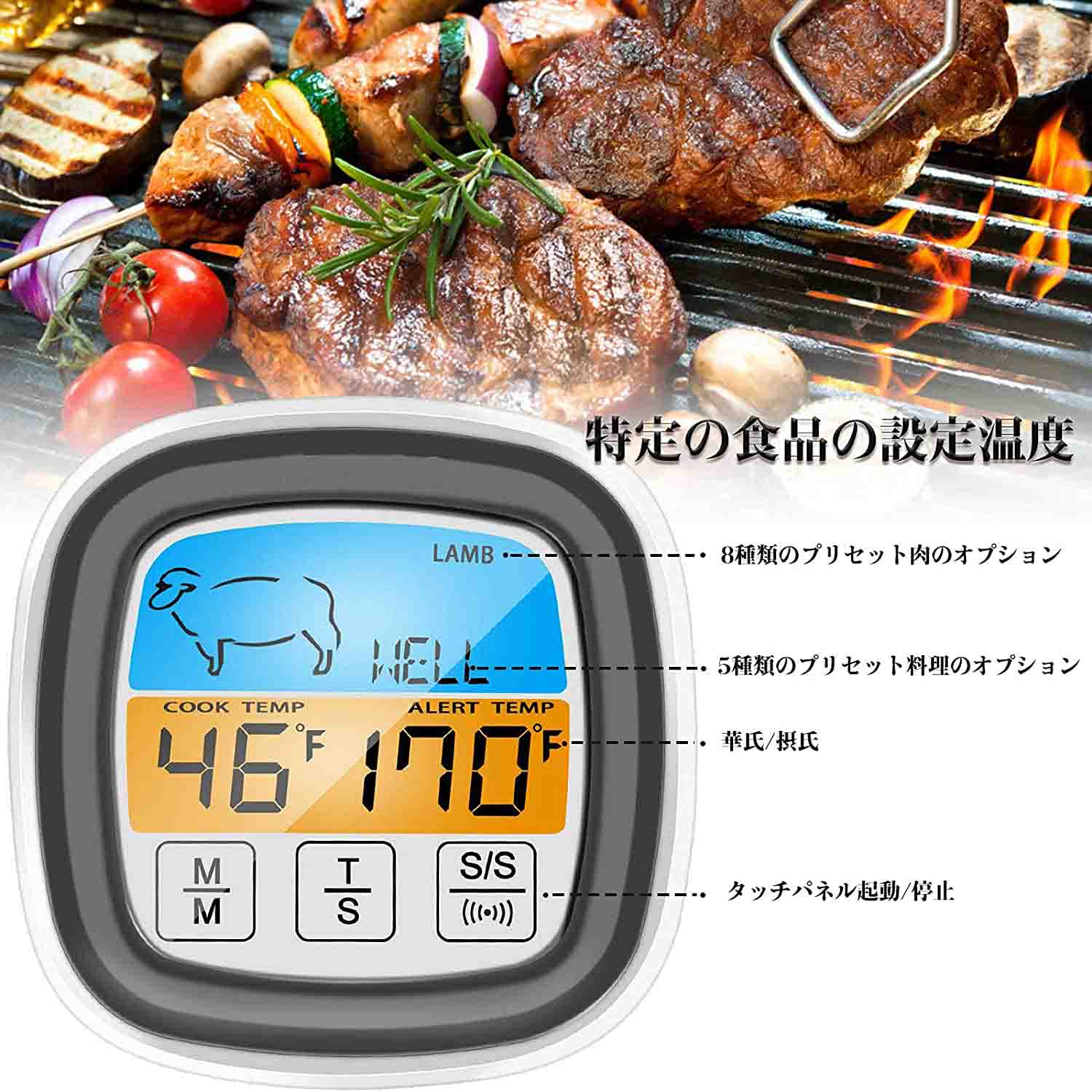 【見やすい&便利】タッチスクリーン式デジタル温度計、液晶画面、バックライト付き、暗い場所でもみやすい。温度測定範囲が-20℃~300℃までと幅広く対応しており、様々な測定物に対してキッチン温度計を使用することができて便利です。(測定単位1℃、精度±1°C)
