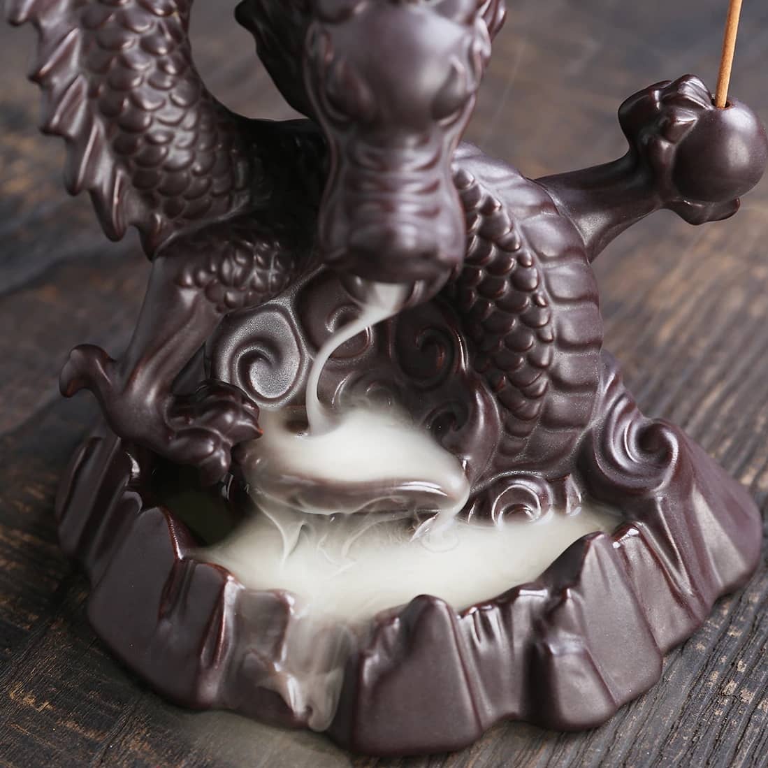 【絶妙な技量】クリエイティブなデザインのセラミック線香ホルダー、マット仕上げ。熟練した職人が伝統的なスタイルで上質な手工芸品を使って作り上げています。煙が滝のように流れ落ち、煙に囲まれた香炉、不思議な雰囲気