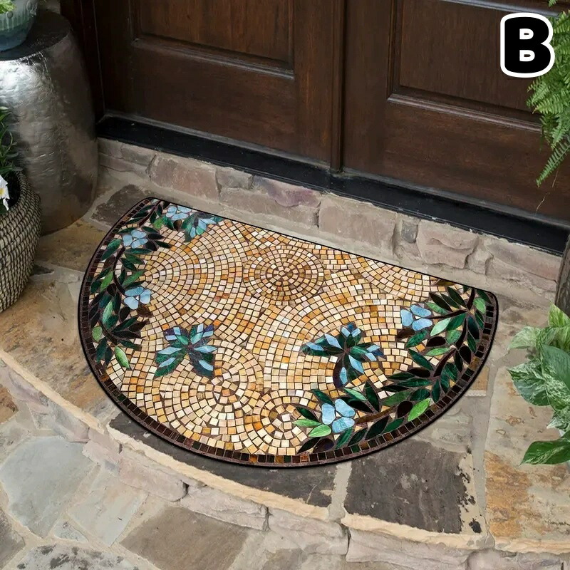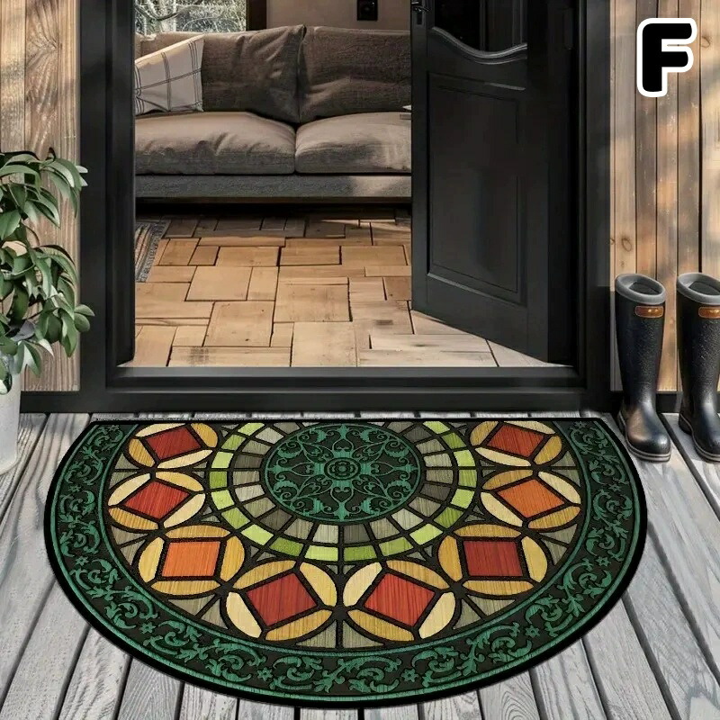 玄関マット 屋内 かわいい おしゃれ 洗える 泥落とし ラバーマット 玄関 ウェルカム 半円 エントランスマット 滑り止め 室内 ドアマット ヴィンテージ 薄型