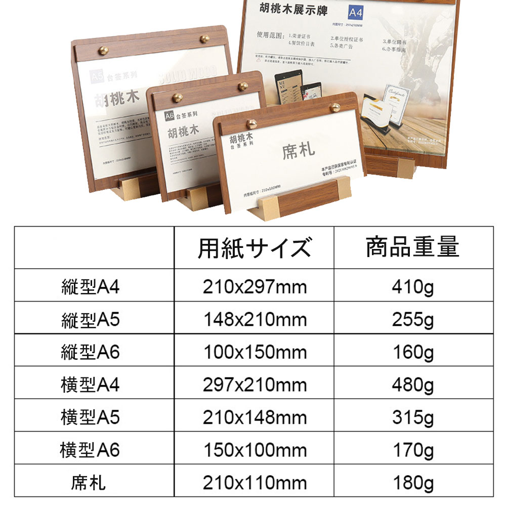 席札 会議用席札 木製 カード立て 卓 A4 A5 A6 席札 縦型 横型