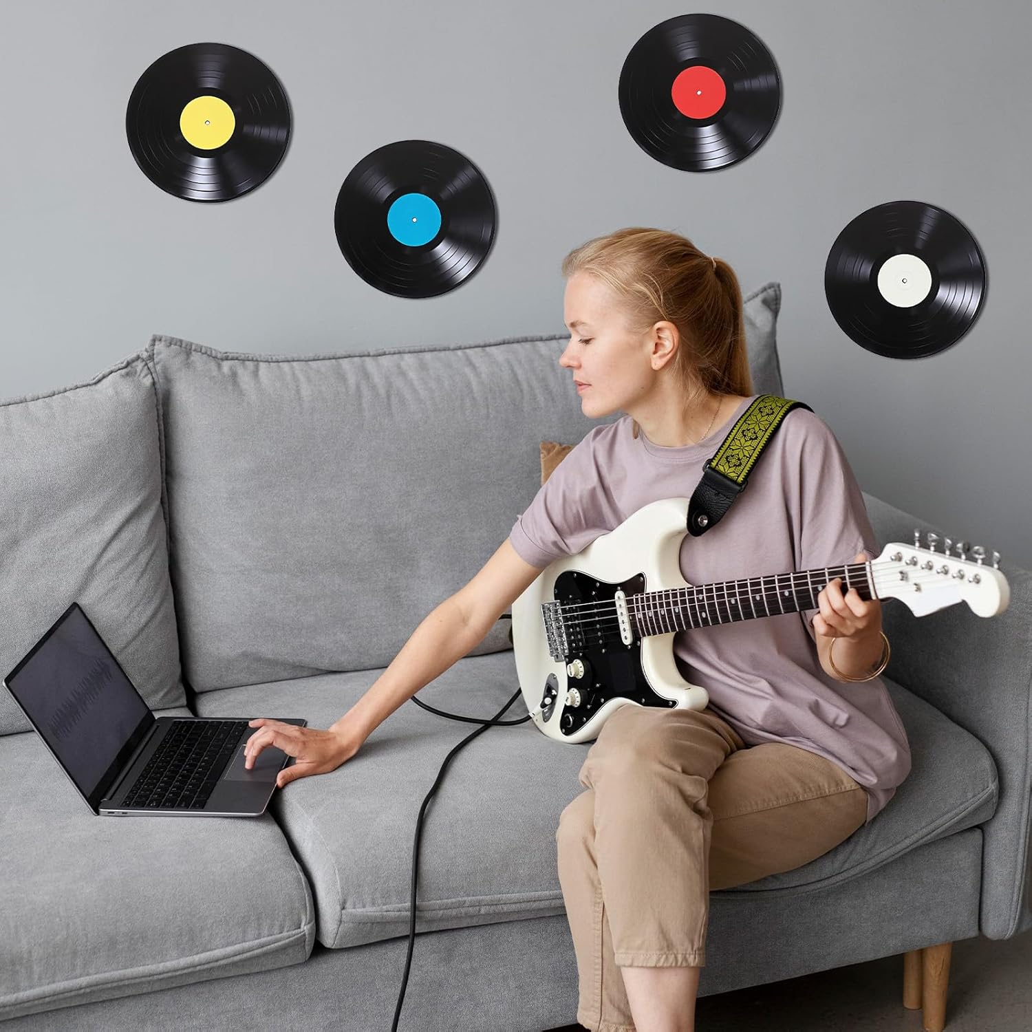 8個 ブランクビニールレコードウォールデコ、9インチ フェイクヴィンテージレコード 80年代 90年代ロックンロールミュージックルーム装飾 インディーウォールエステティックルーム装飾、70年代