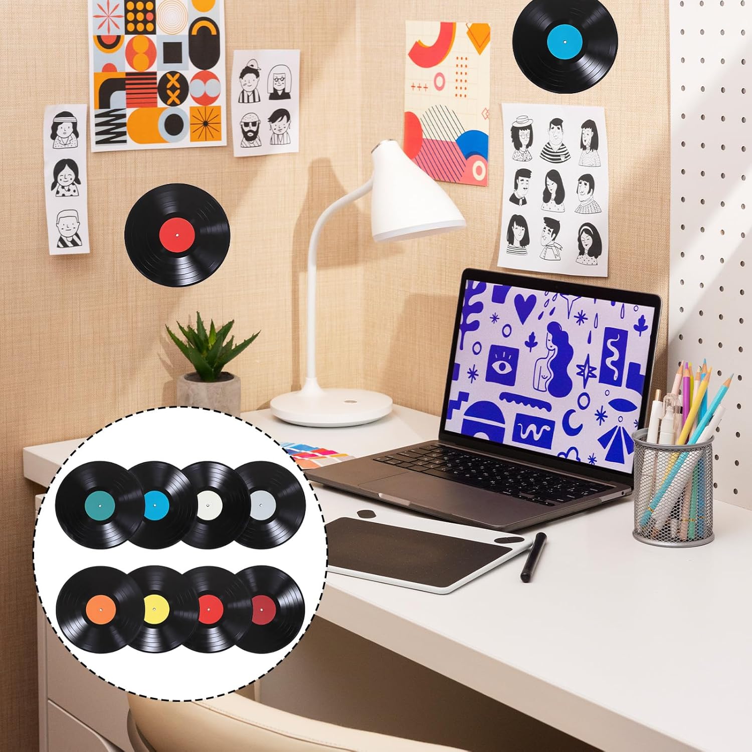 【クリエイティブなDIY装飾】このアートデコレーションビニールレコードは中型で創造的な形をしており、想像力を使って直接グラフィティを描いたり、DIYしたり、空白のレコードにお気に入りのステッカーを貼り付けたりできます。 各レコードは異なる色のセンターパターンを持っているので、あなた自身の美的傑作とユニークな個性とスタイルを作成することができます。