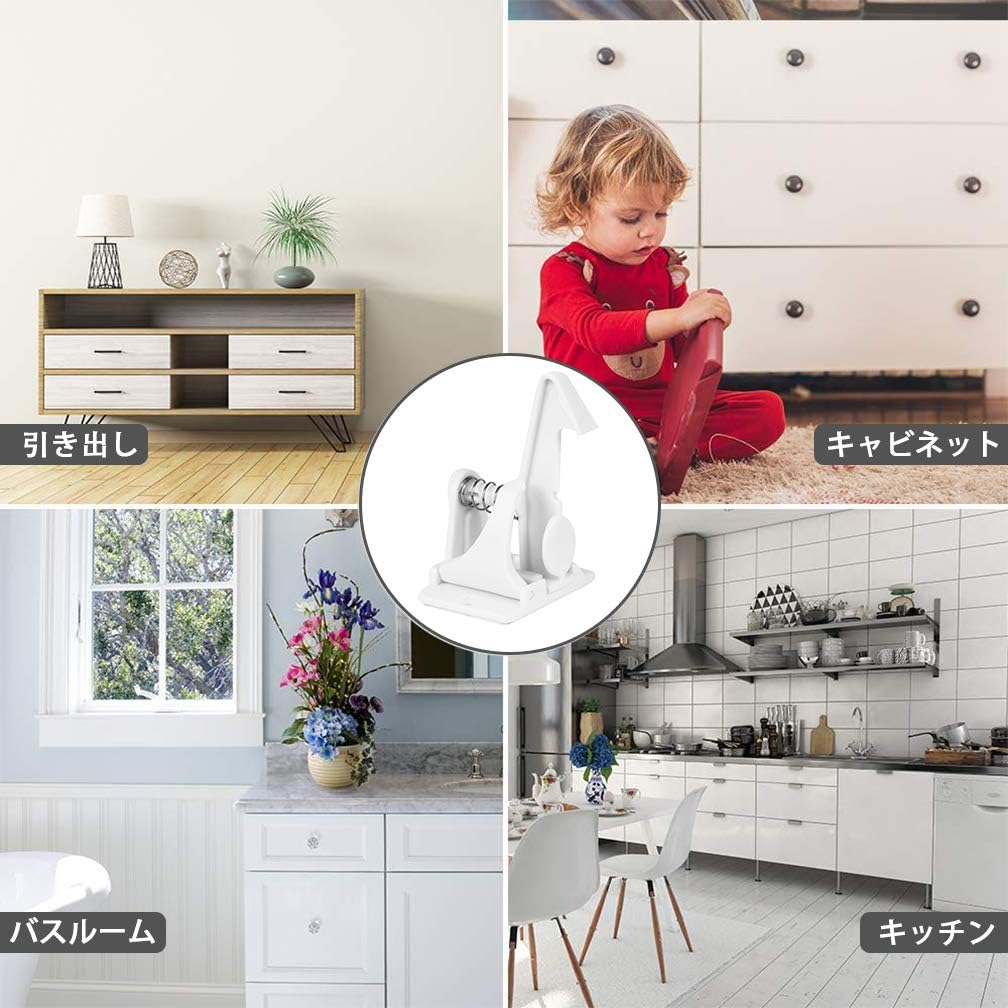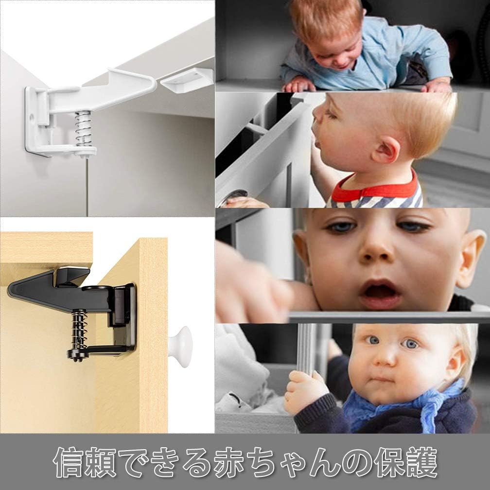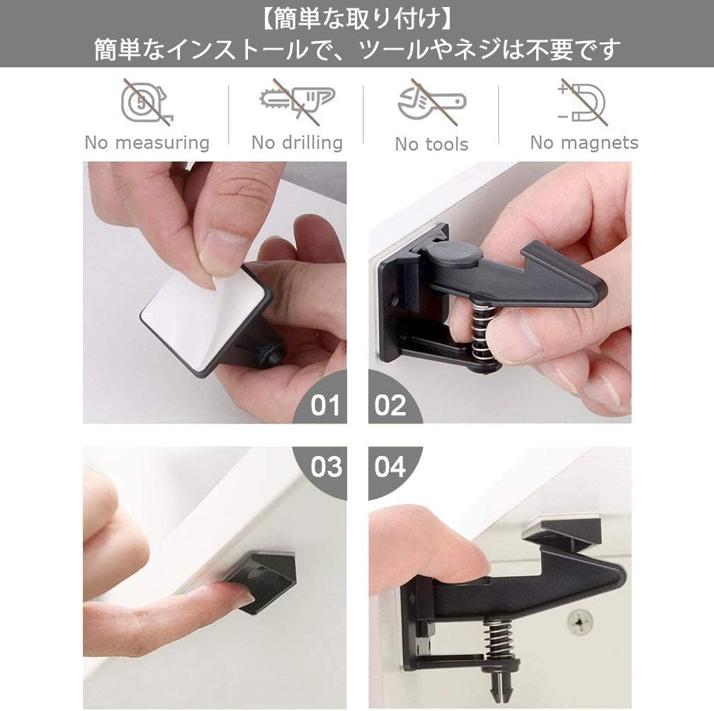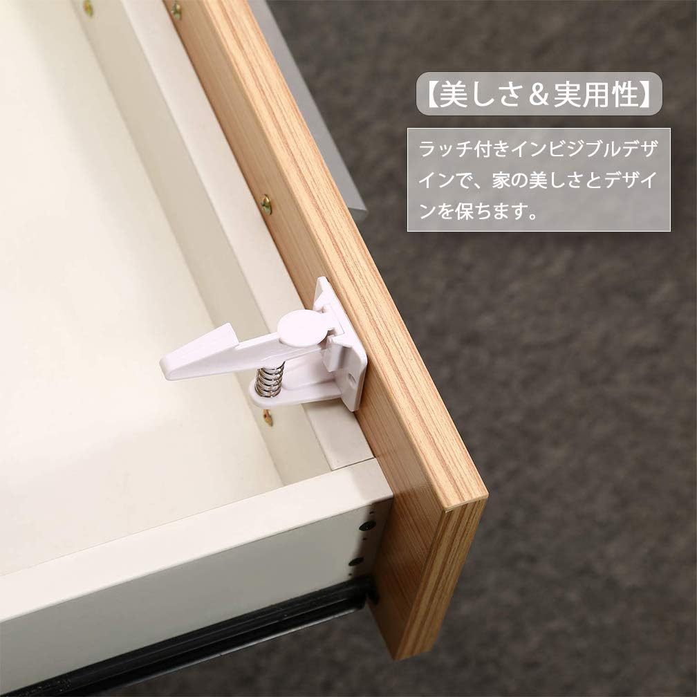 10個セット ベビーガード キャビネットロック チャイルドロック 引き出しロック ストッパー 子供 いたずら防止 地震対策 赤ちゃん 指はさみ防止 強力テープ 取り付け簡単 ブラック ホワイ 工具不要