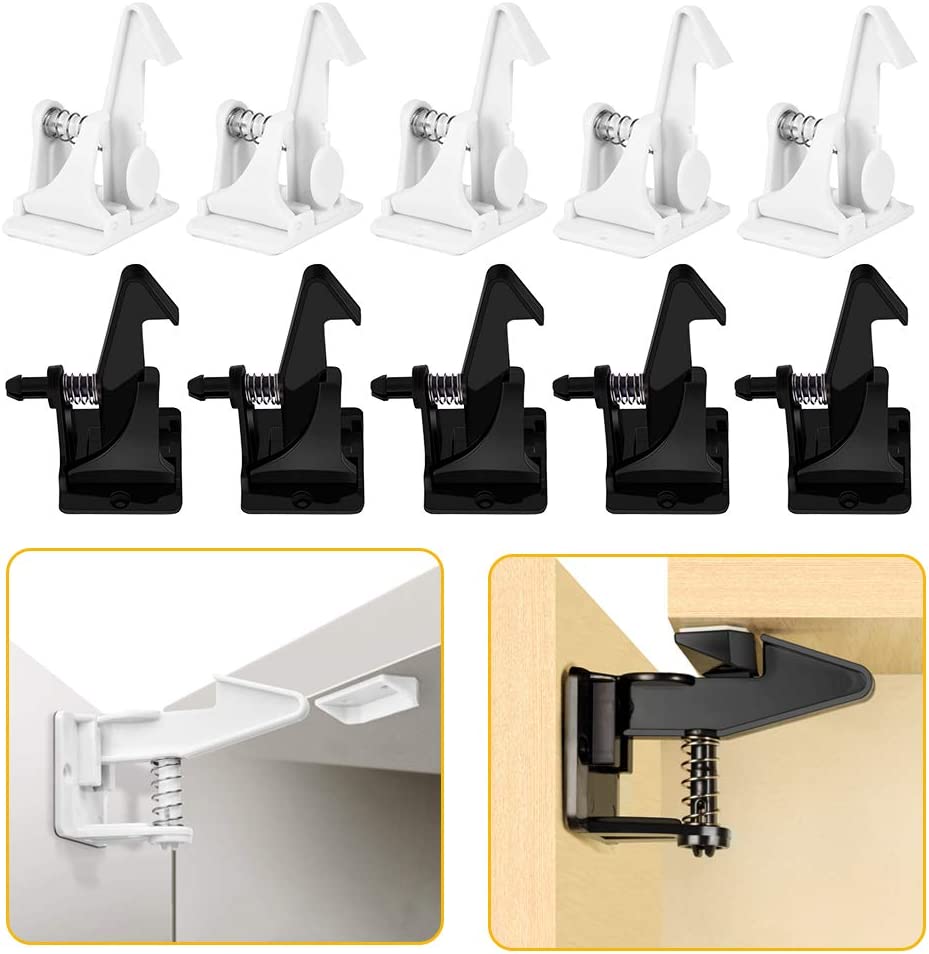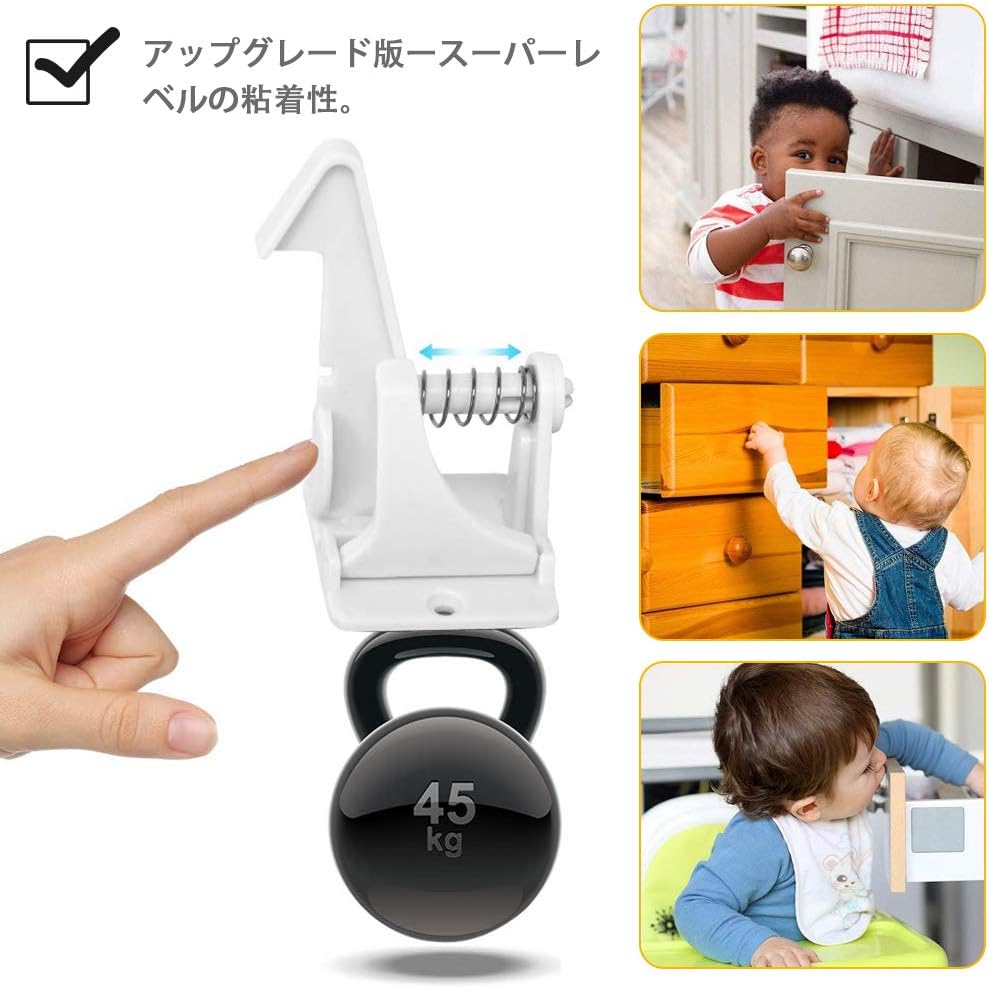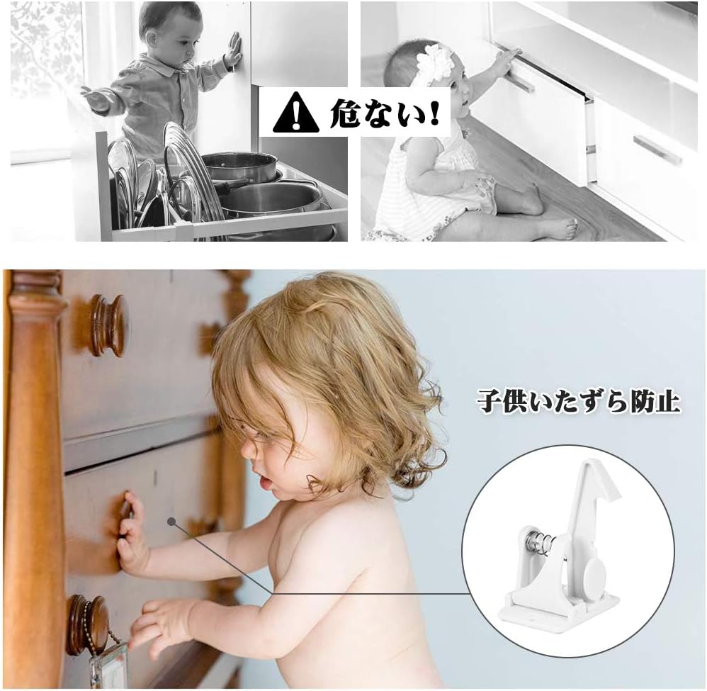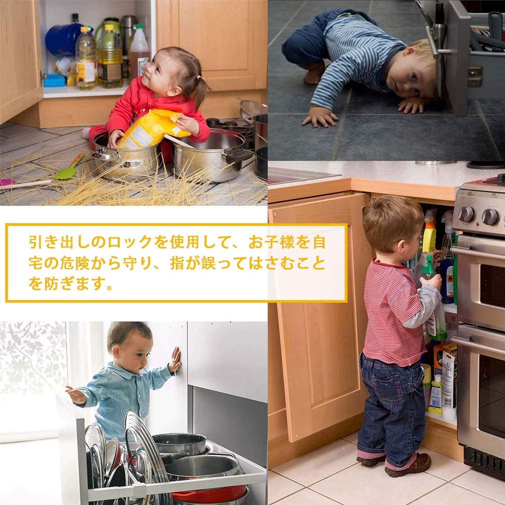 10個セット ベビーガード キャビネットロック チャイルドロック 引き出しロック ストッパー 子供 いたずら防止 地震対策 赤ちゃん 指はさみ防止 強力テープ 取り付け簡単 ブラック ホワイ 工具不要