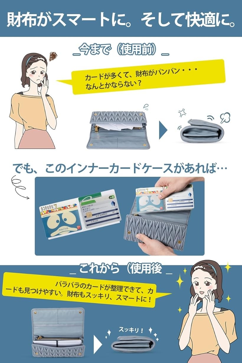 「 出し入れらくらく。 」 カードをサッと取り出せて、お買い物もスピーディなお手持ちの長財布に入るカードケース。