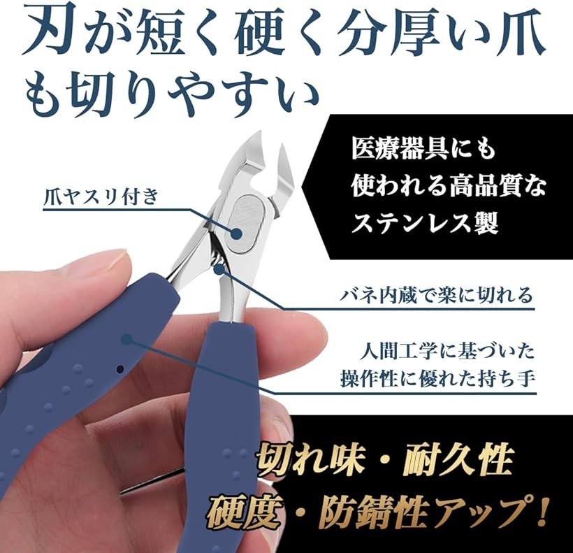 皮膚科医監修 爪切り ニッパー つめきり 足用 ステンレス製 ニッパー爪切り 爪やすり ゾンデ 厚爪 青