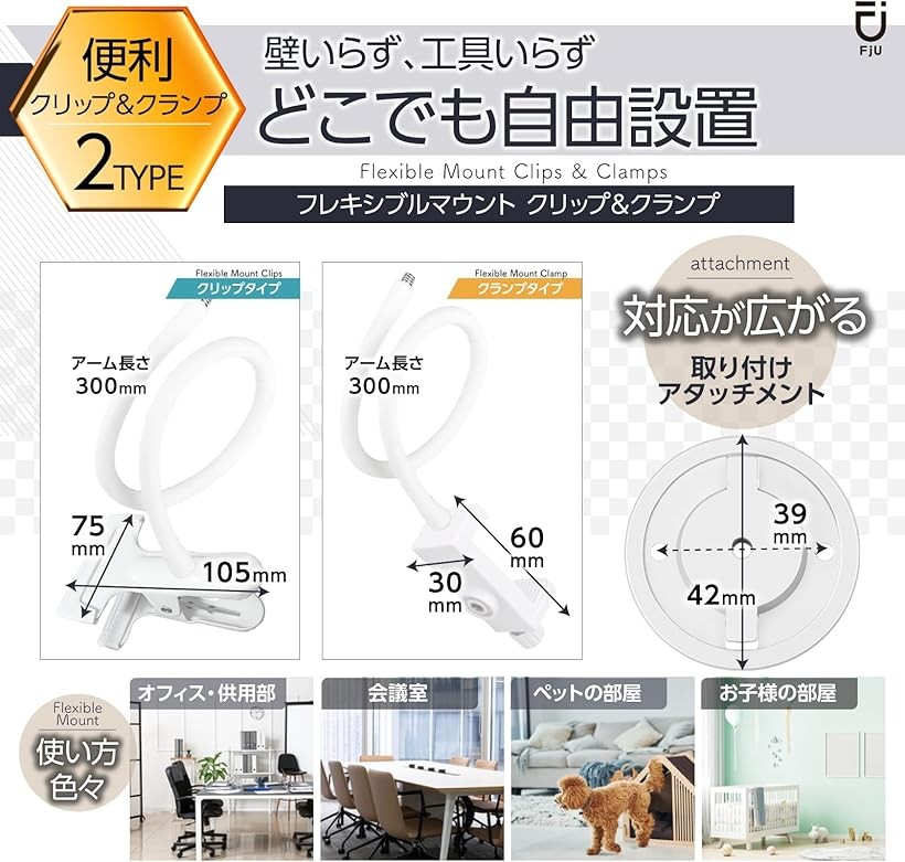 「2タイプの取り付け方式」用途に合わせて選べる「クランプタイプ」と「クリップタイプ」の2種類を用意致しました。