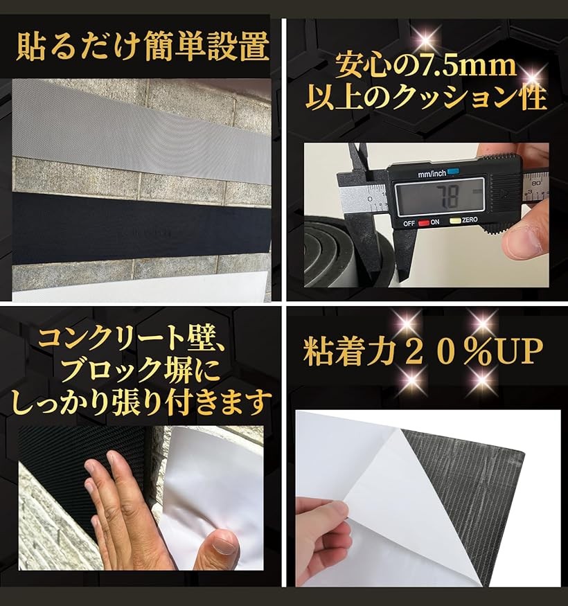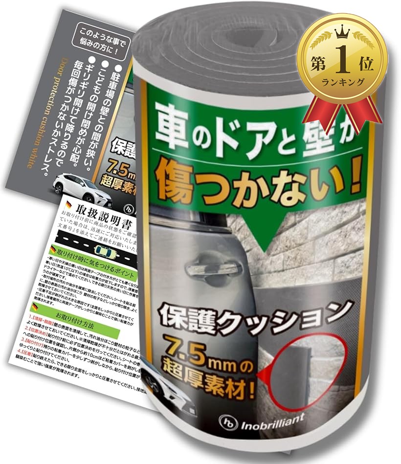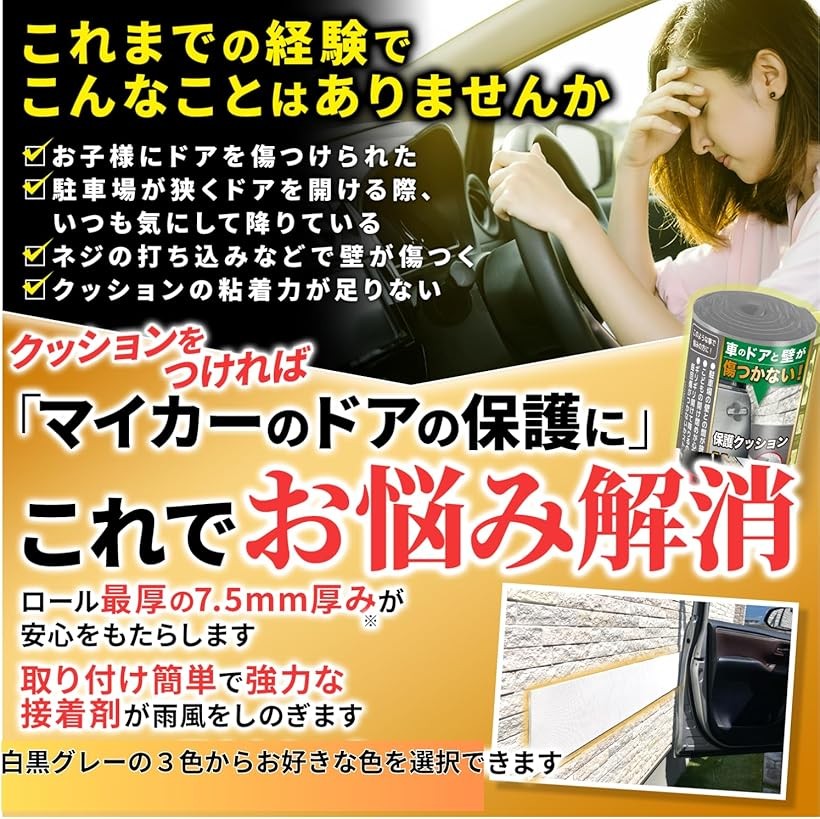 「車のドア&ガレージの壁のキズ防止に」軽量で柔らかいシート状のクッション材。