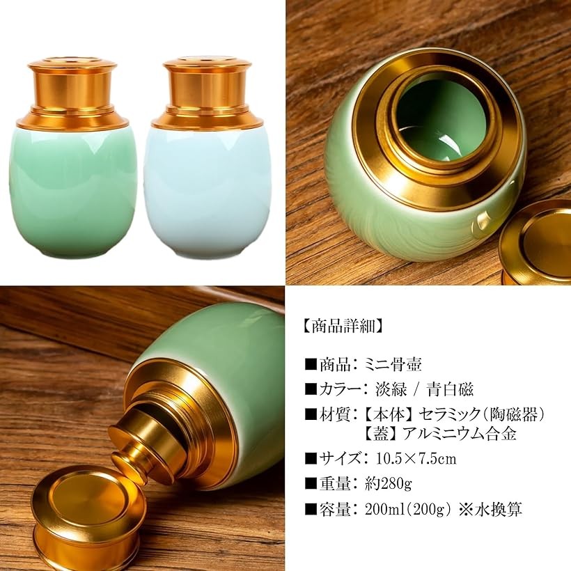 ミニ骨壷 ペット 手元供養 遺骨入れ 陶器製 仏壇 仏具 納骨 分骨 容量200g 青白磁