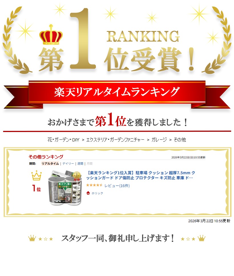 「車のドア&ガレージの壁のキズ防止に」軽量で柔らかいシート状のクッション材。