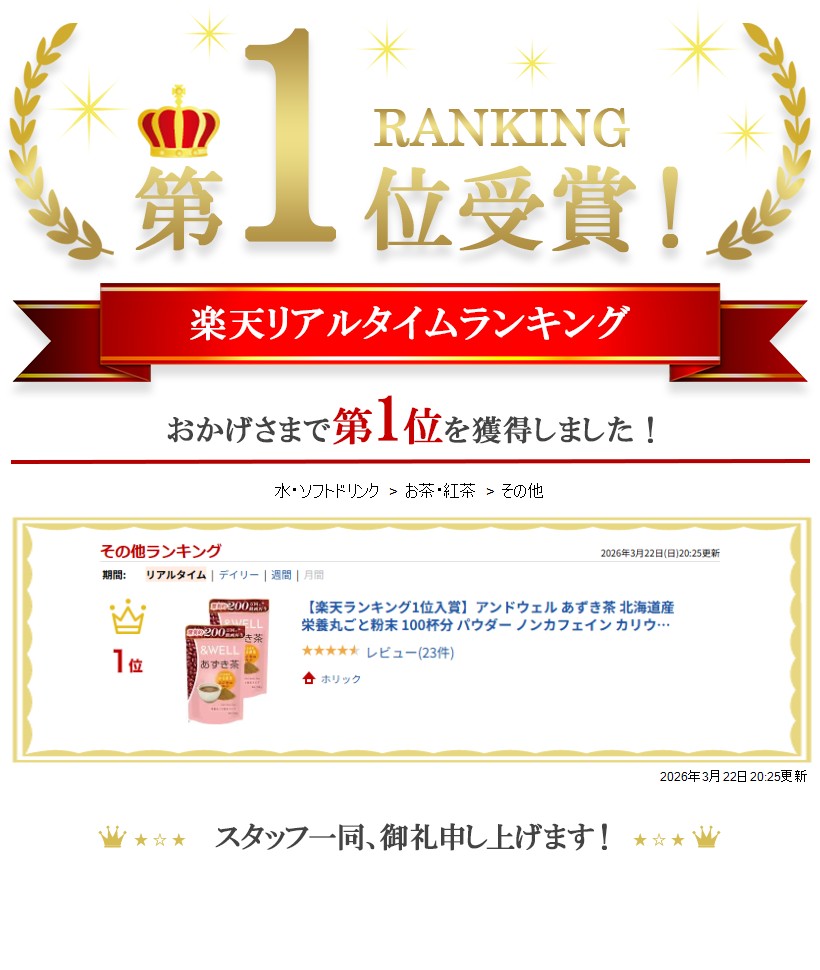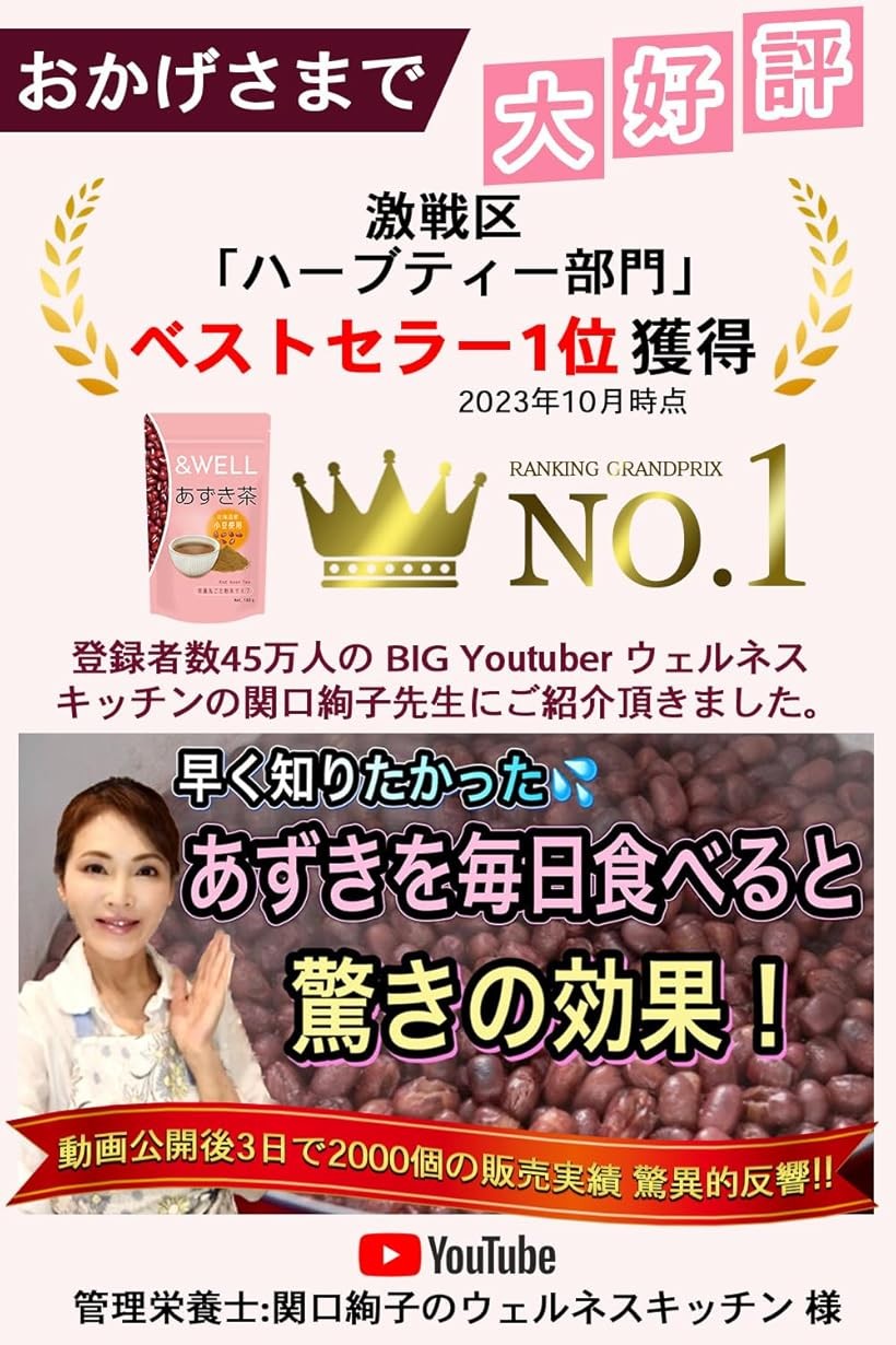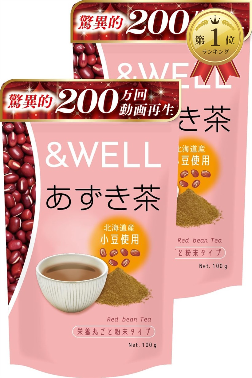 アンドウェル あずき茶 北海道産 栄養丸ごと粉末 100杯分 パウダー ノンカフェイン カリウム 含有