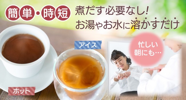 「簡単・時短」パウダータイプだから煮だす必要なし、急須も不要。