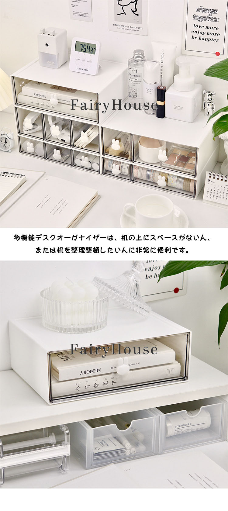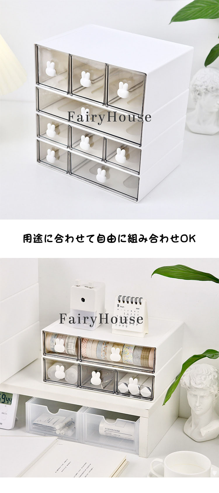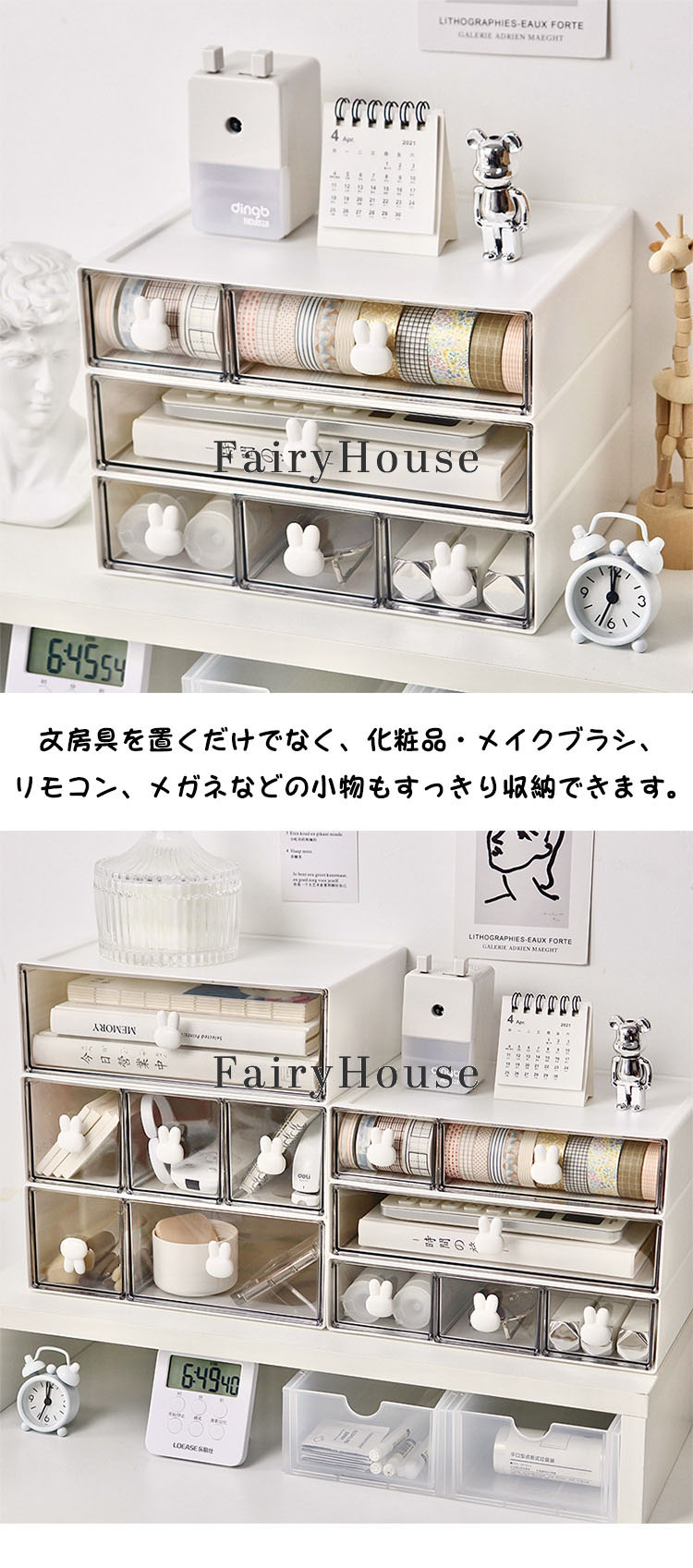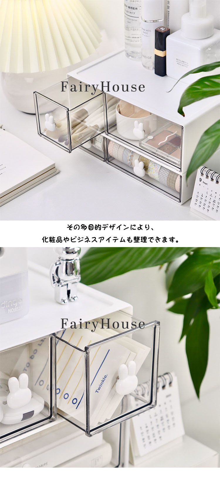 卓上収納ケース デスク 引き出し 卓上収納 収納ボックス 収納ケース 書類ケース レターケース 化粧品 文房具 小物ケース デスク収納 かわいい ウサギ スタッキング オフィス コ おしゃれ