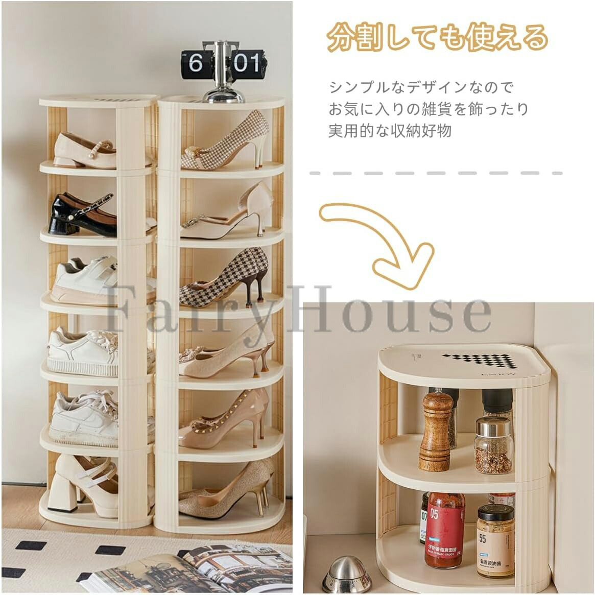 【省スペース&大容量収納】必要なスペースは僅か、スペース利用率が非常に高く、狭いところの玄関、壁コーナー、洗面所、ソファーの隙間まで収めます。部屋のコーナーには最適です。