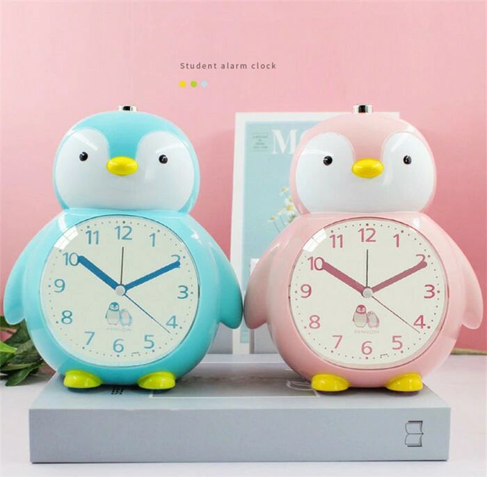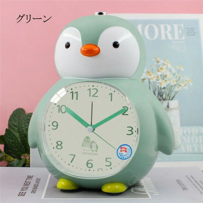置き時計 目覚まし時計 ペンギン 静音 ブルー ピンク グリーン