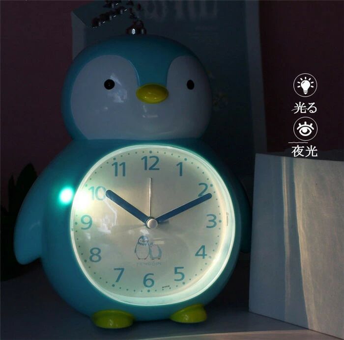 置き時計 目覚まし時計 ペンギン 静音 スタンドクロック 可愛い時計 子供部屋飾り ライト 時計 インテリア 置き掛け 卓上 とけい クロック 雑貨