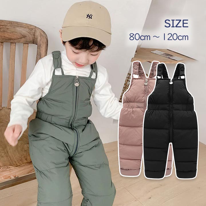 子供サロペット ダウン スノーウェア キッズ ベビー マタニティ 人気 khaki green black pink 80cm 90cm 100cm 110cm 120cm