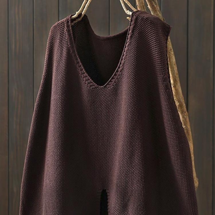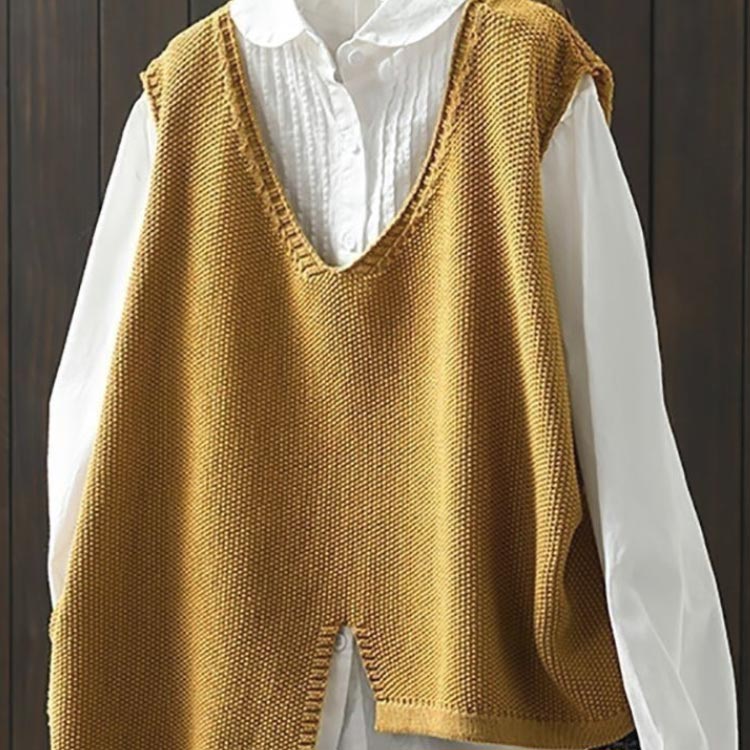 シャツやカットソーの上に着て簡単にコーデ完成のノースリニット。
