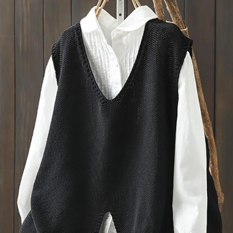 ニット ベスト 春 夏 レディース ジレ レイヤード トップス セーター スリット 重ね着 Vネック お尻が隠れる サマーニット 薄手 大きいサイズ 体型カバー ゆったり 黒 ブラック オフ シンプル
