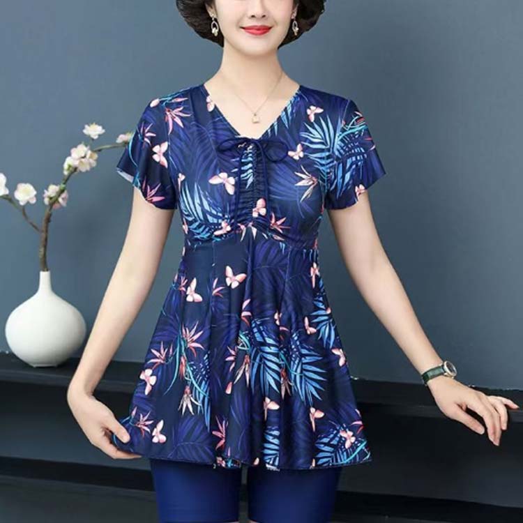 シニア向け水着。大人っぽい花柄がオシャレなチュニック風ワンピース水着!