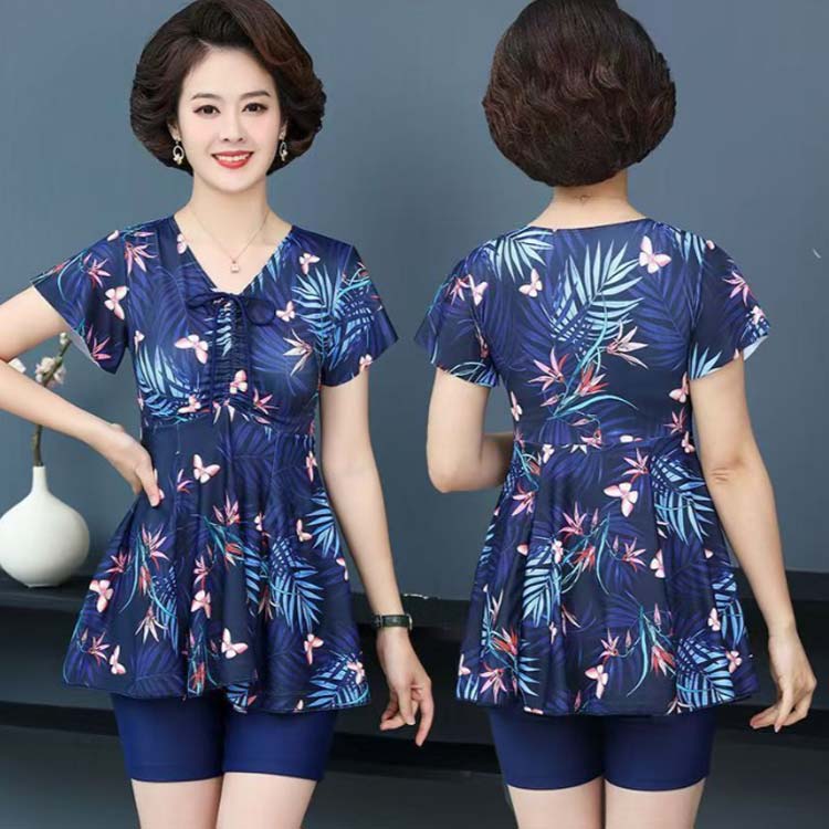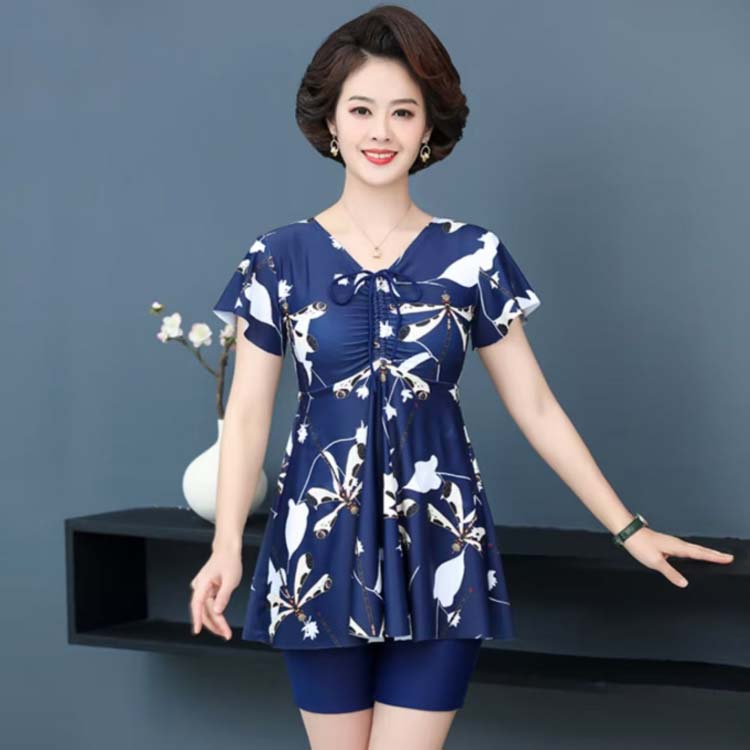 水着 レディース 体型カバー シニア 50代 ワンピース タンキニ 2点セット 大人 ビキニ セパレート水着 半袖 ショートパンツ ラッシュガード ママ水着 中高年 温泉 お母さん 保守