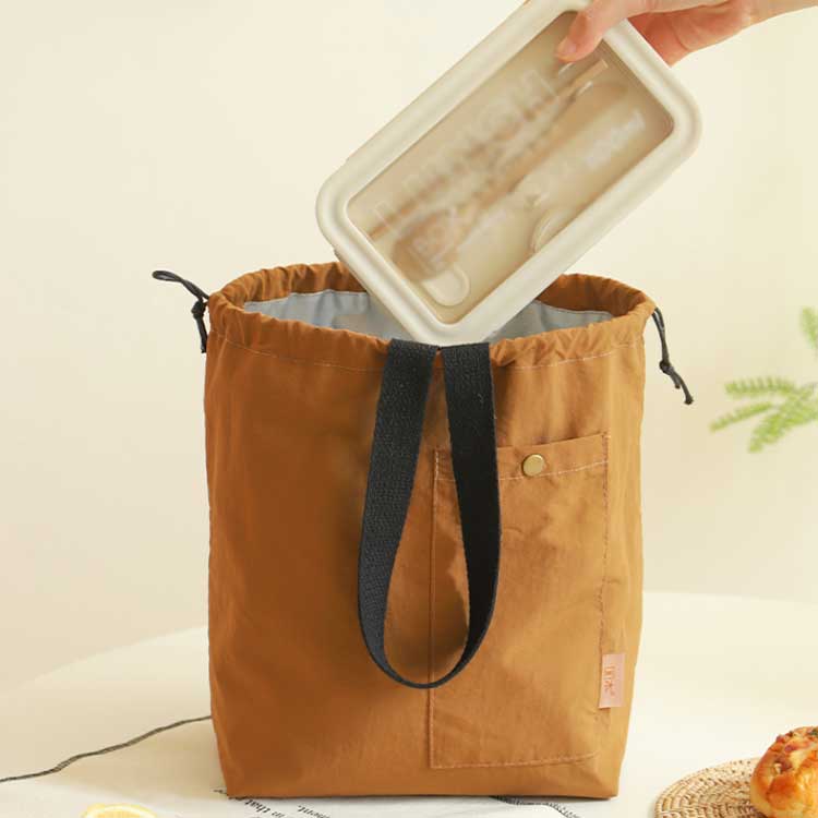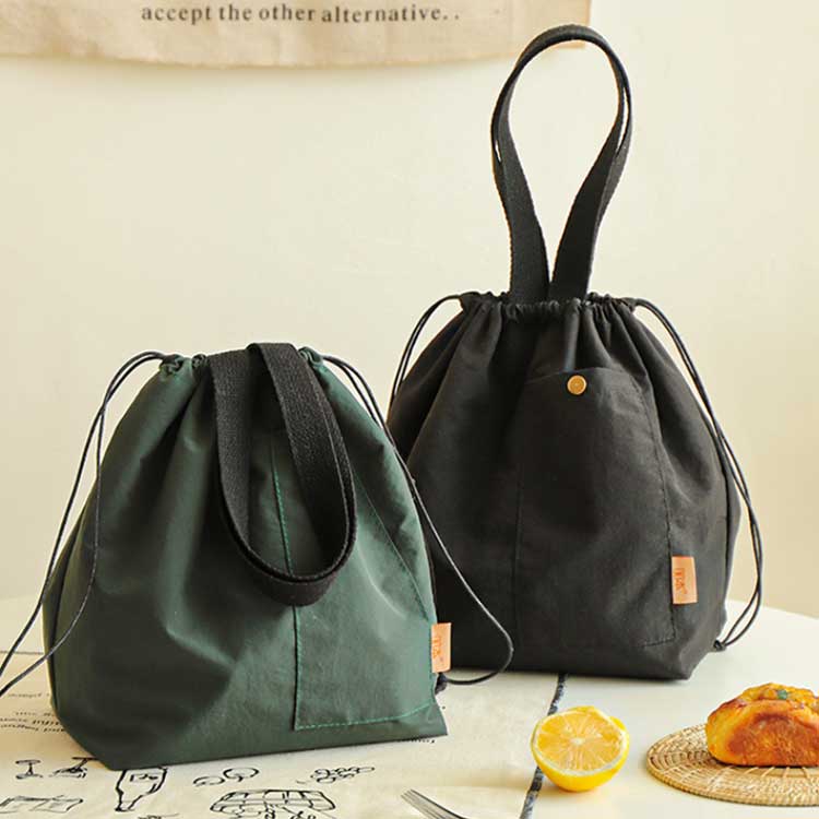 使いやすい大容量巾着タイプのランチバッグ