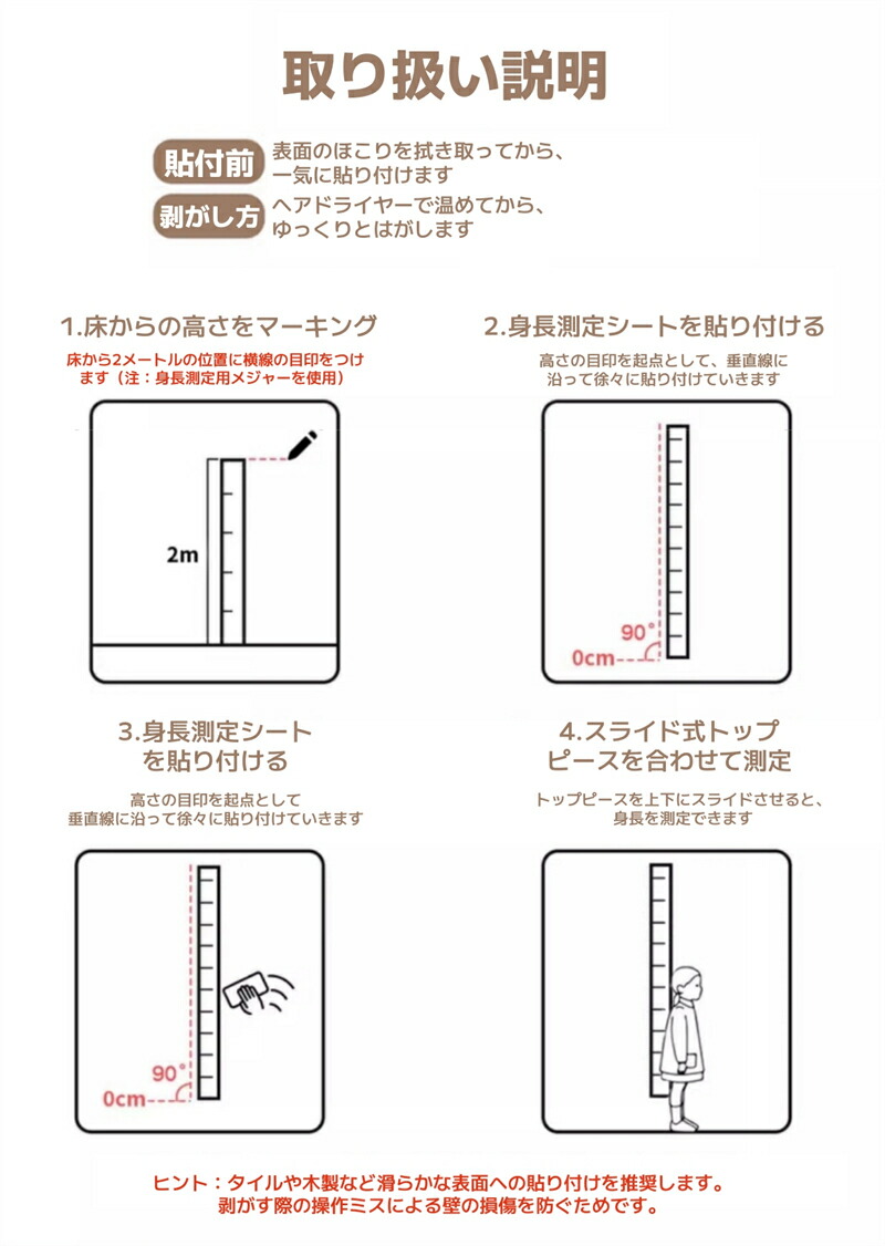 身長計 身長測定 子供用 成長記録 キッズメジャー 壁貼り 透明 耐久性 防水 可愛い 北欧 見やすい 飾り インテリア キッズ ジュニア 賃貸 身長 月齢フォト 記念 目盛り 2個入り 寝相アート