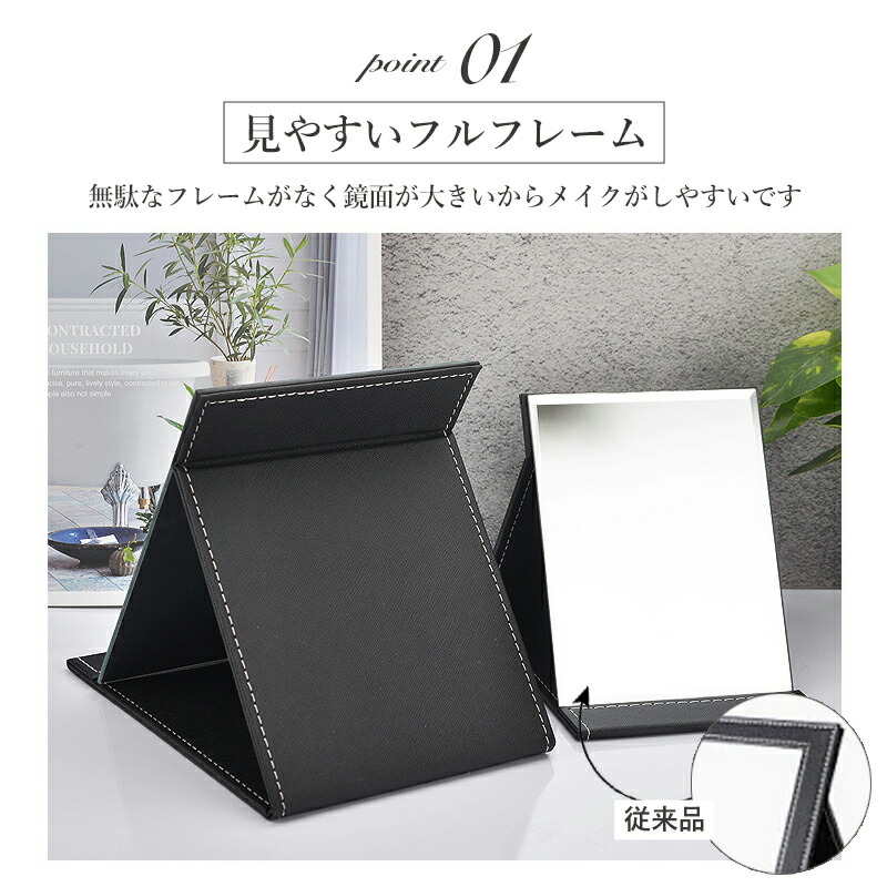 折り畳みミラー 卓上ミラー 卓上鏡 折 ブラック ホワイト ライトピンク ビビットピンク レッド ライトブルー レザーブラック S M L