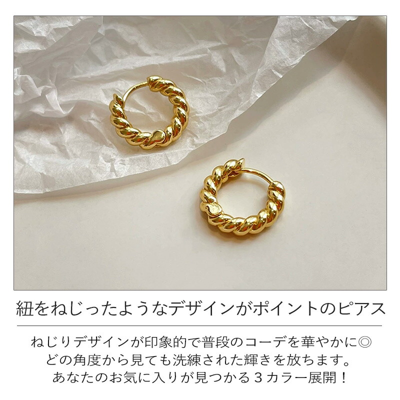 ピアス フープピアス ねじり ツイスト ジュエリー アクセサリー 早い者勝ち ゴールド シルバー ピンクゴールド