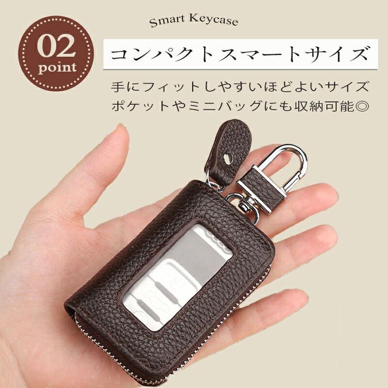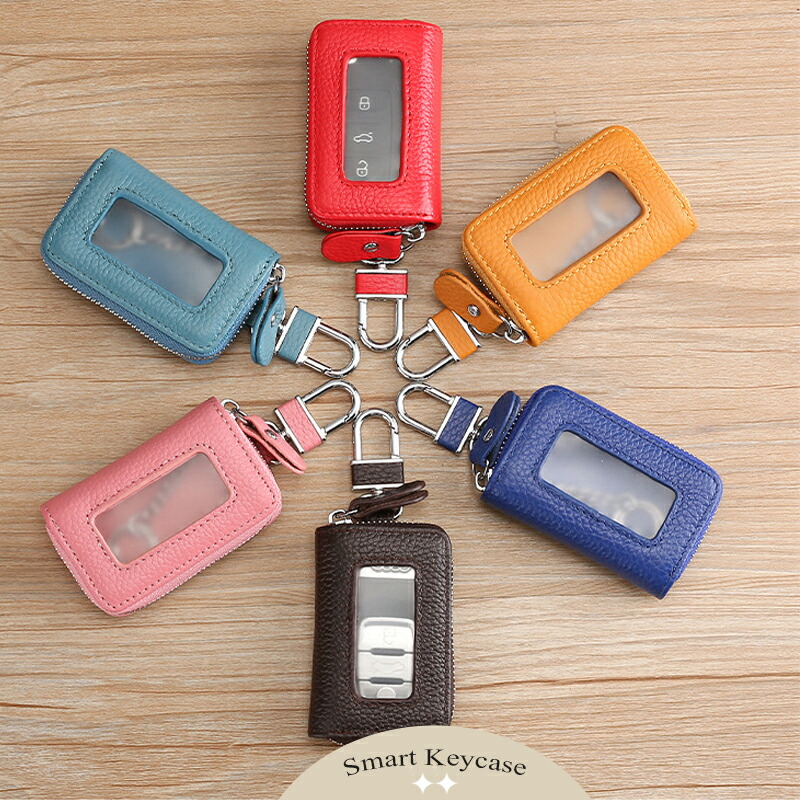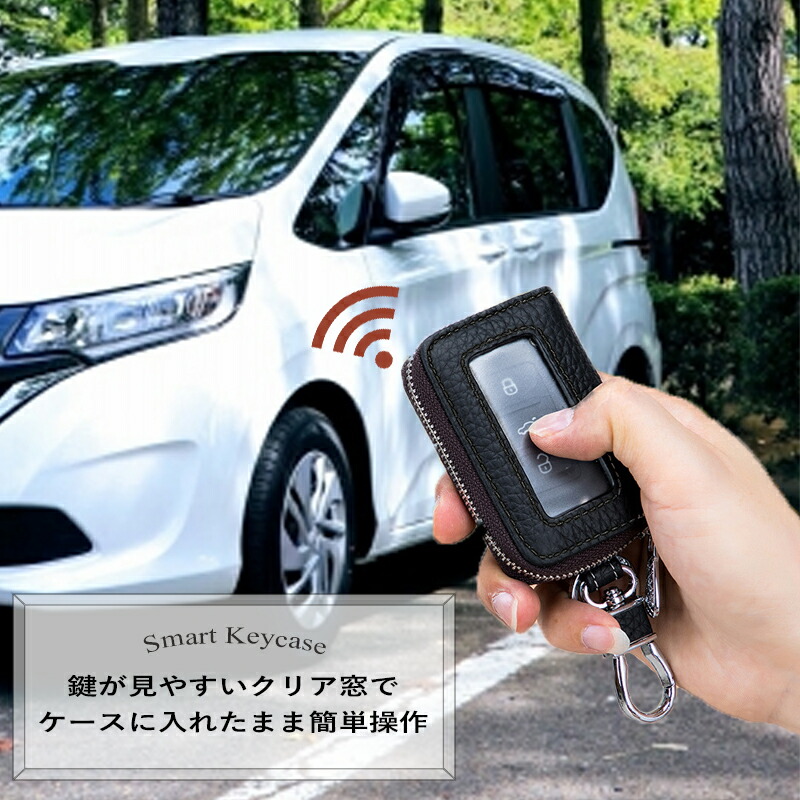 キーケース レディース スマート スマートキーケース 9cm 使いやすい カラビナ付き 1本 メンズ 見える窓付き 小さい コンパクト 車 クリア窓付き ファスナー付き カード 薄型 薄 ミニマリスト