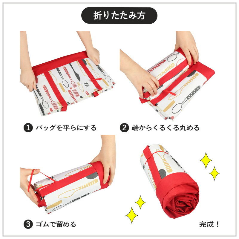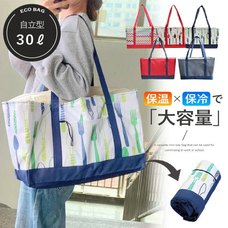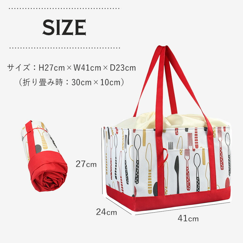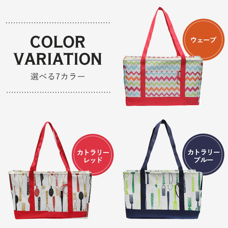 エコバッグ 折りたたみ 保冷 大容量 バッグ エコバッグ 人気 ウェーブ カトラリーレッド カトラリーブルー ネイビー グレー レッド