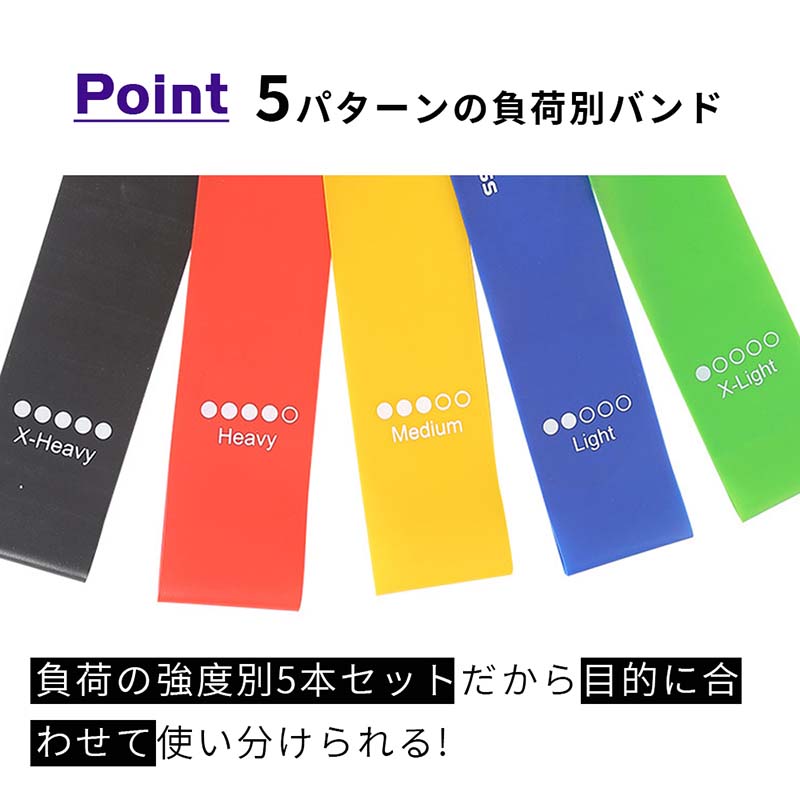 エクササイズ トレーニングチューブ 5枚セット 筋トレ チューブ ループバンド 美尻バンド ヒップバンド ヒップアップ器具 ゴムバンド 下半身 お尻 太も ストレッチ