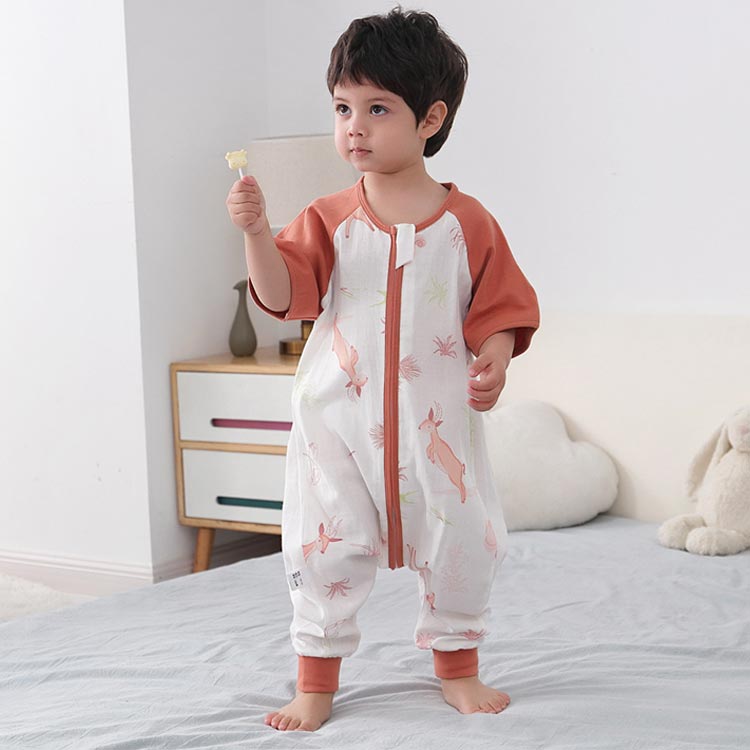 柔らかい コットン パジャマ ベビースリーパー 半袖 ジップアップ 前開き ガーゼスリーパー ベスト 赤ちゃん 新生児 綿 お昼寝 キッズ 寝巻 ルームウェア スリーパー ベビー用品 贈り ロンパース