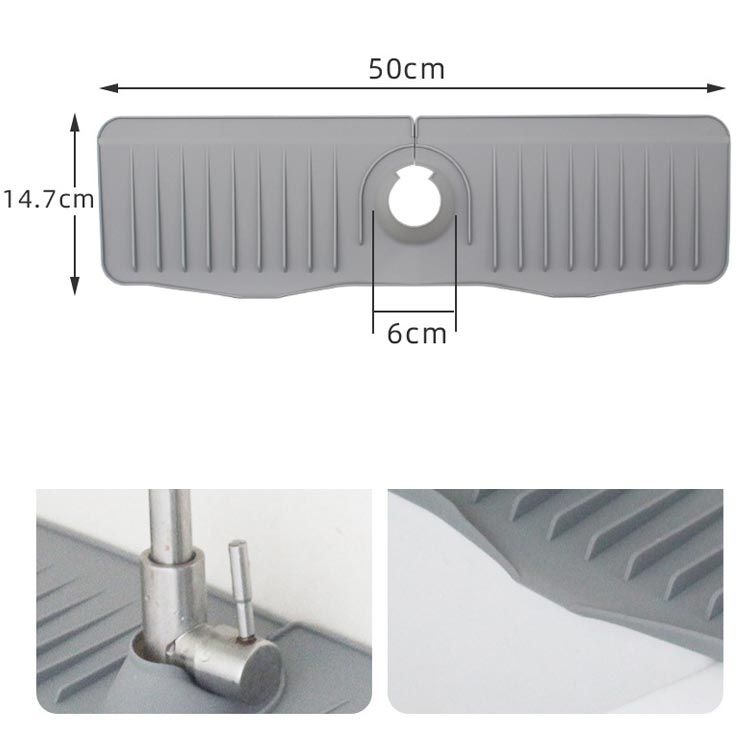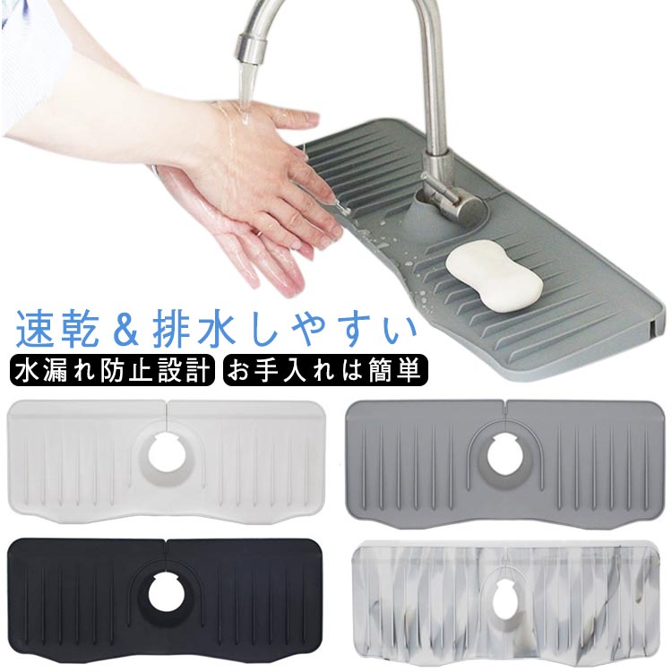 蛇口カバー付き 蛇口水切りマット 50cm シリコン 蛇口排水マット 長い ロング 蛇口用シリコン水切りマット 水汚れ防止 速乾 抗菌 防カビ 乾燥用マット 滑り止め バスルーム 洗面台 ト キッチン