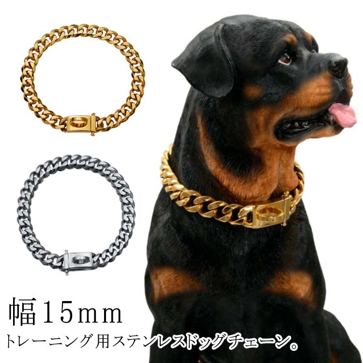 犬用 幅15mm しつけ用 おしゃれ ゴールド 首輪 チョーカー 太い 太め ステンレス チェーン アクセサリー 訓練用 シルバー トレーニング カッコイイ ワンちゃん ペット ド 犬