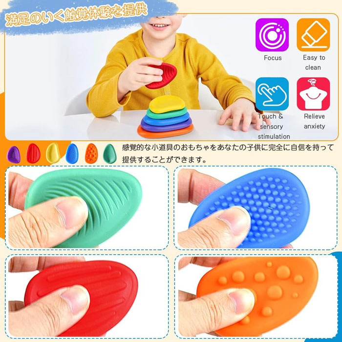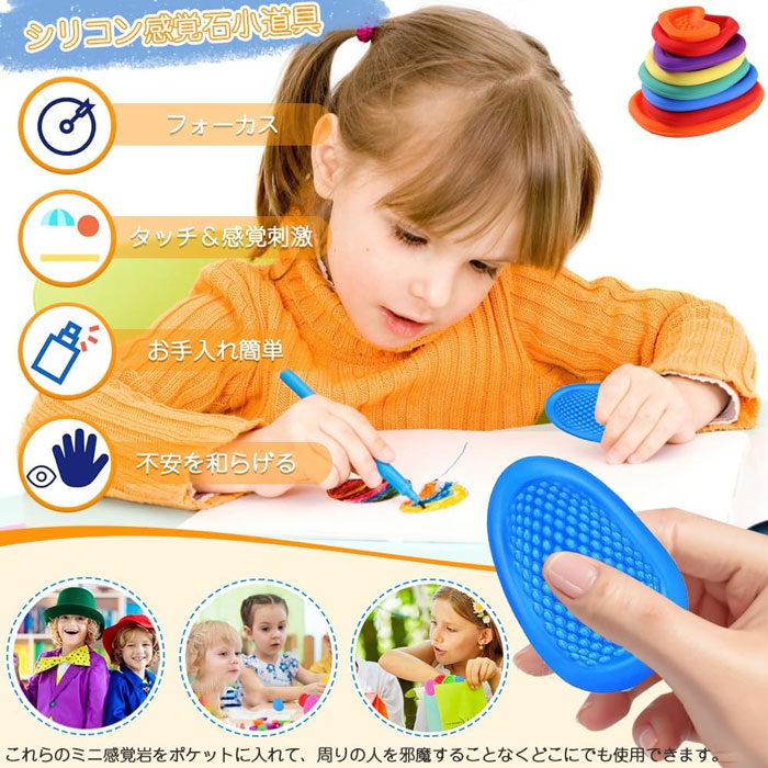 感覚刺激グッズ トレス解消 自閉症 シリコン感覚石 カラフルな心配石 感覚的な小道具 ストレス解消 耐摩耗性 柔軟性 触感の快適 不安解消 触覚刺激 ADHD および不安の感覚 再利用 子供用