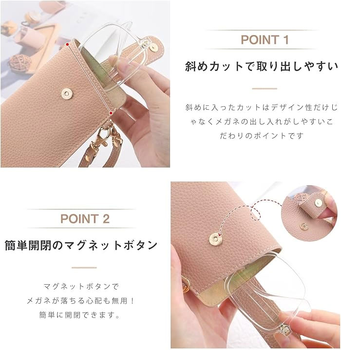 【持ち運び便利】コンパクトでスペースを取らず、収納にも持ち運びにも便利です。そして、ストラップが付いていてメガネをバッグのハンドルに吊り下げて収納できます。メガネを使いたい際に鞄の中を探さ必要はなくとても便利です。