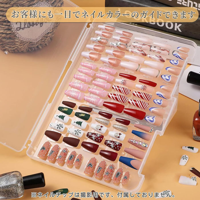 【イチオシポイント】開くだけでネイルチップを一覧化して見れる。お客様にも一目でネイルカラーのガイドできます。ネイルサロンへの必需品です。