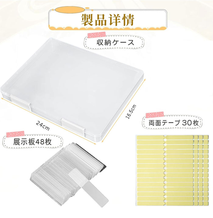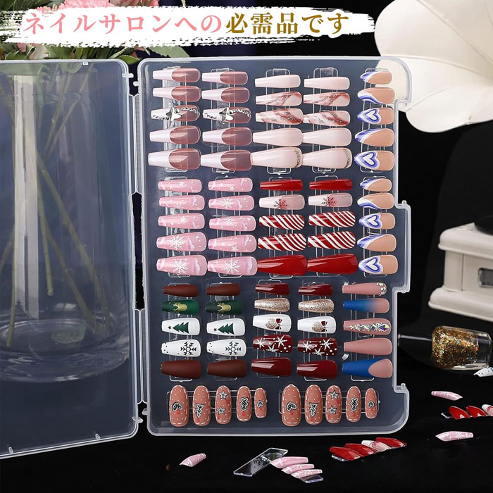 【製品仕様】ネイル収納ケース×1、両面テープ×30、ネイルチップ展示板×48。※ネイルチップは撮影用です、付属しておりません。