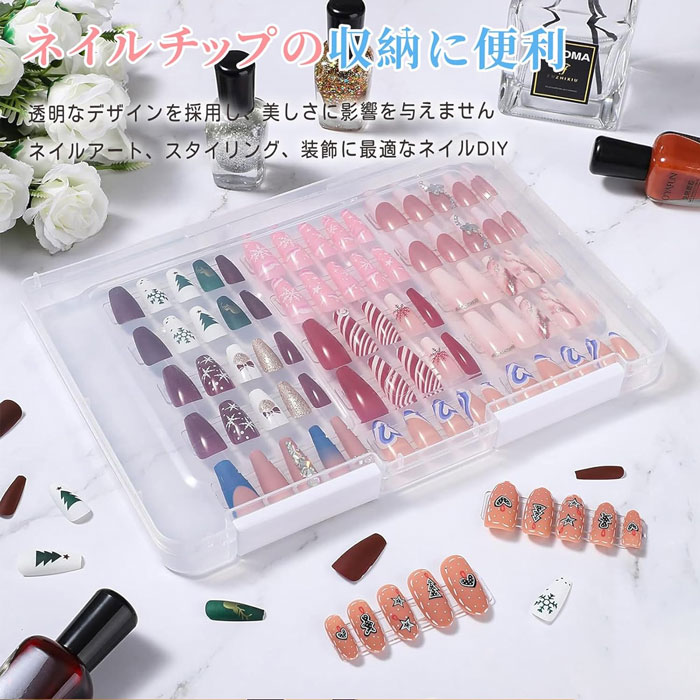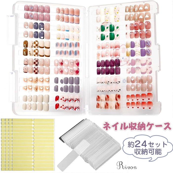 ネイル収納ケース 約24セット つけ爪収納 ボックス 大容量 収納可能 透明 ネイルボックス ネイルストレージボックス 固定テープ付き 持ち運び ネイルアートラック 防塵 ケース 多機能 ネイル 収納