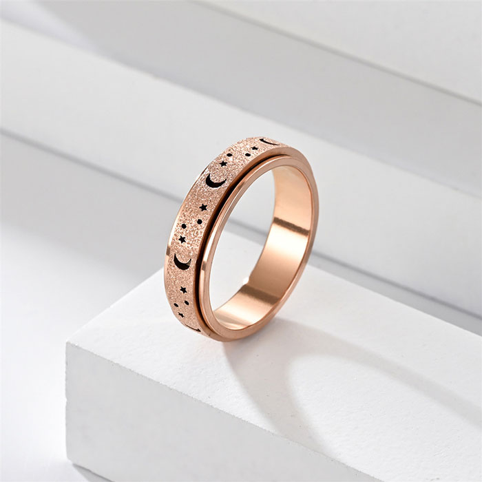 ストレス 解消 リング フィジェットリング 不安解消 ステンレス 発散 緩和 リラックス 指輪 ペアリングにも ローズ 可動ランナー 不安を和らげるリング オープンセット デー ストレス解消
