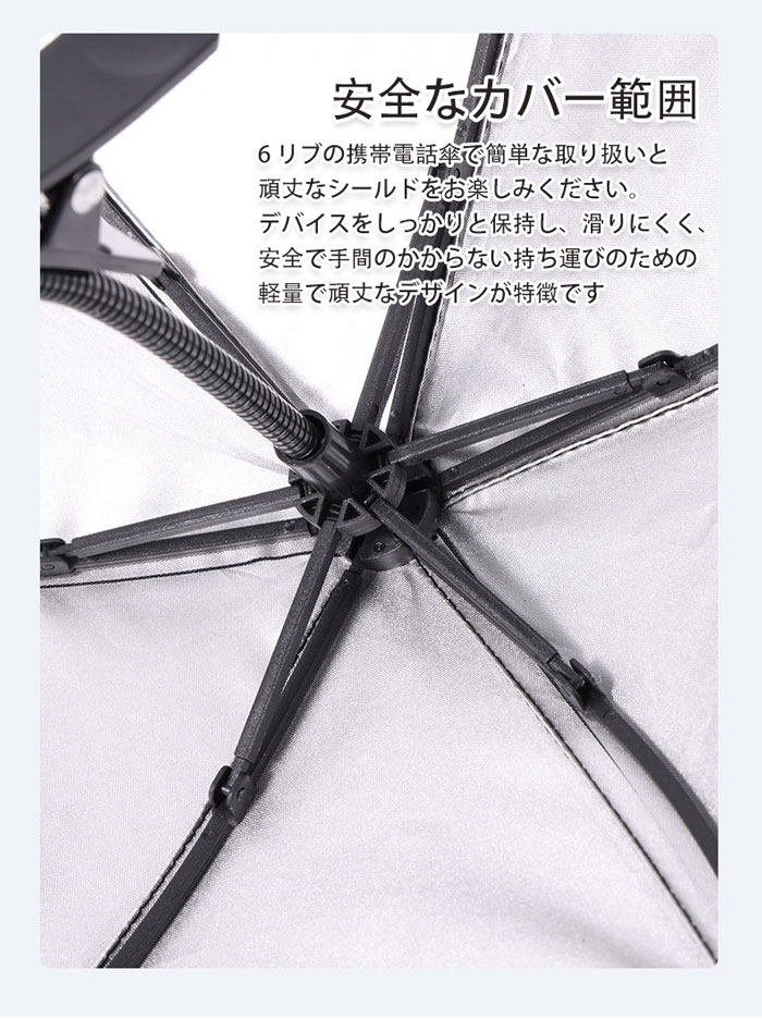 耐久性の保証:耐衝撃性の生地で作られたこの携帯傘は、デバイスを太陽光線から保護し、長時間快適に使用できます。