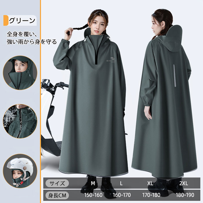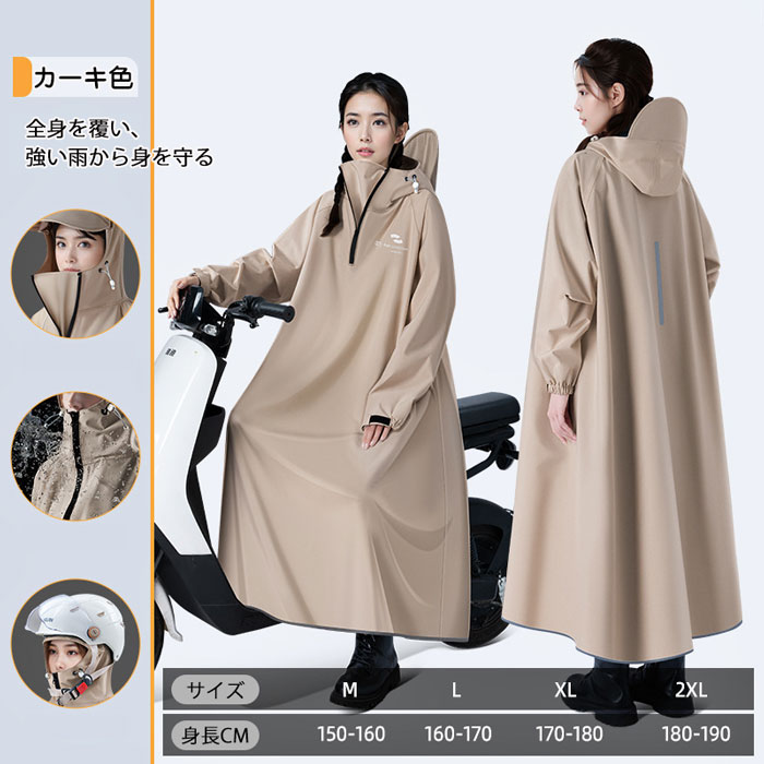 バイク レインコート 豪雨対応 自転車 アウトドア ウェア レインウェア レインポンチョ 超目玉商品 カーキ色 グリーン ブラック ホワイト M L XL XXL
