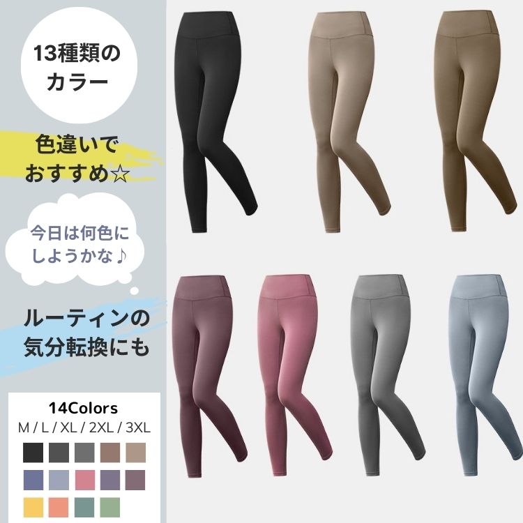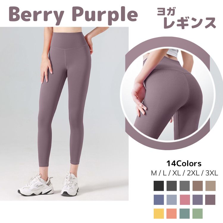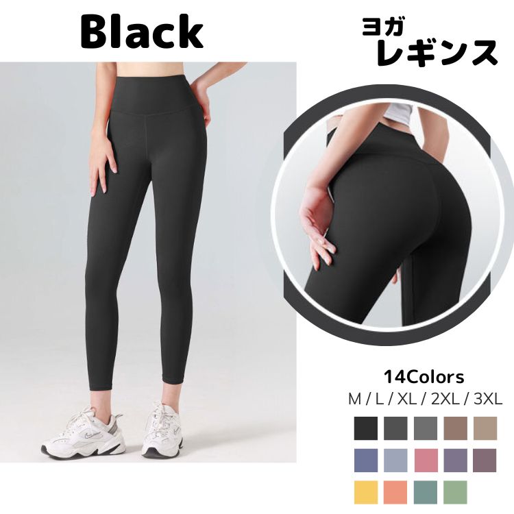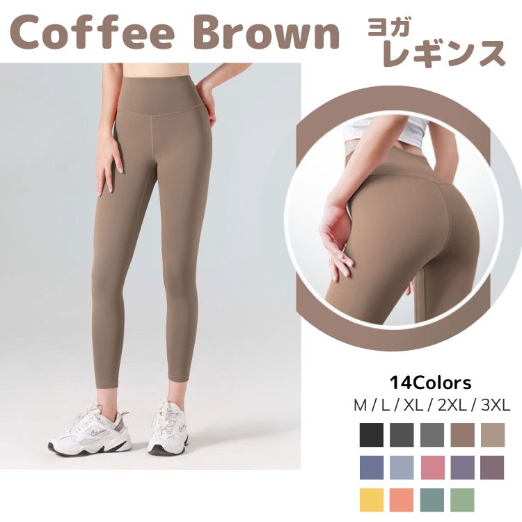 ヨガパンツ 9分丈 正面 スポーツ アウトドア 新作 ブラック コーラルピンク ベリーパープル コーヒーブラウン M L XL 2XL 3XL